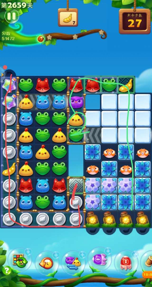 开局打冰块激活星星瓶,1-2两条豆荚路线。