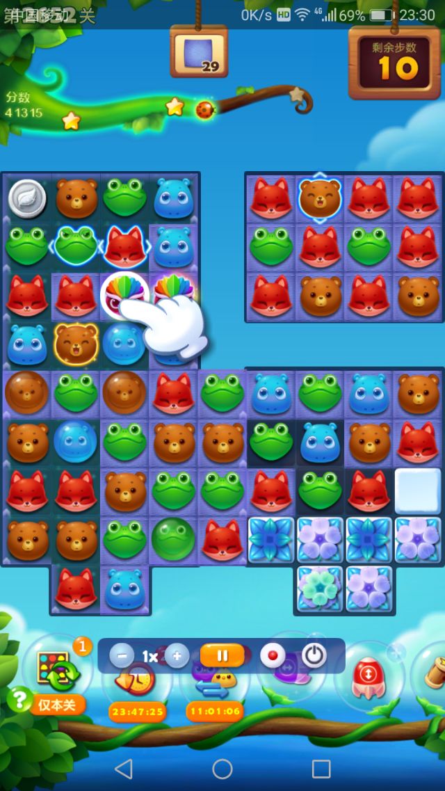 【连续消除】:连续消除得分:一般消除一下30分,连消每次+30,60、90、120依次叠加;冰块里面消除一次1000,连消一次+1000,2000、3000、4000依次叠加;5+4组合一下给2000,每个被变化动物200分,每打掉一个普通的动物15分,冰块1500。