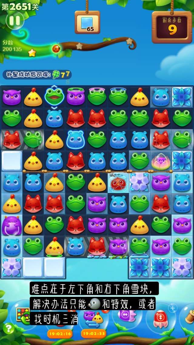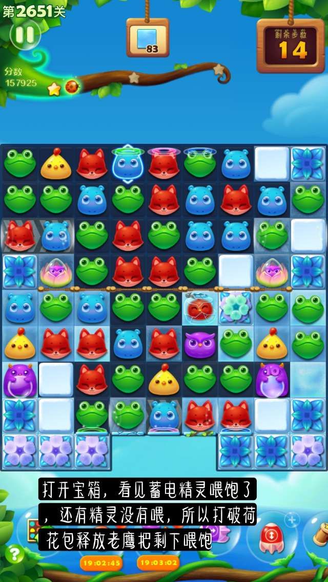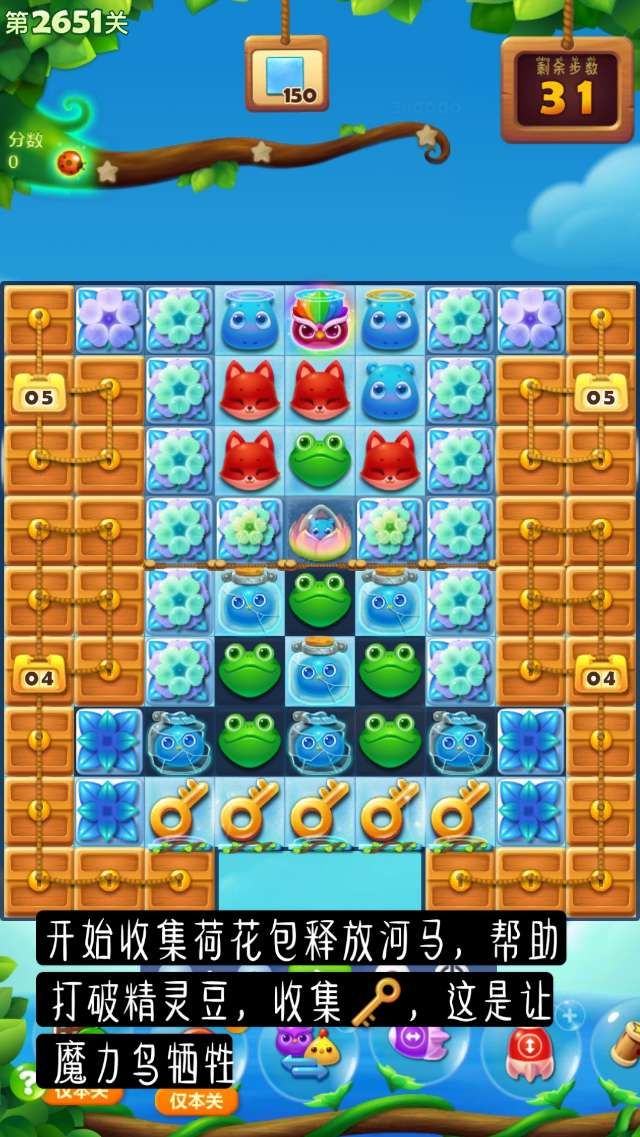 ③当关卡中有三消可利用时,优先使用三消进行,上方区域是比较容易合成特效的,可以辅助消除。荷花苞尽量不要刻意使用步骤去消除。