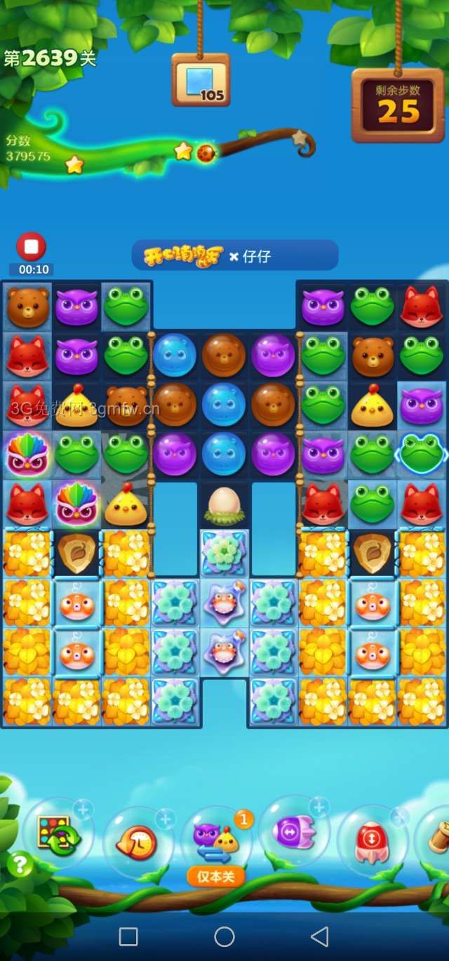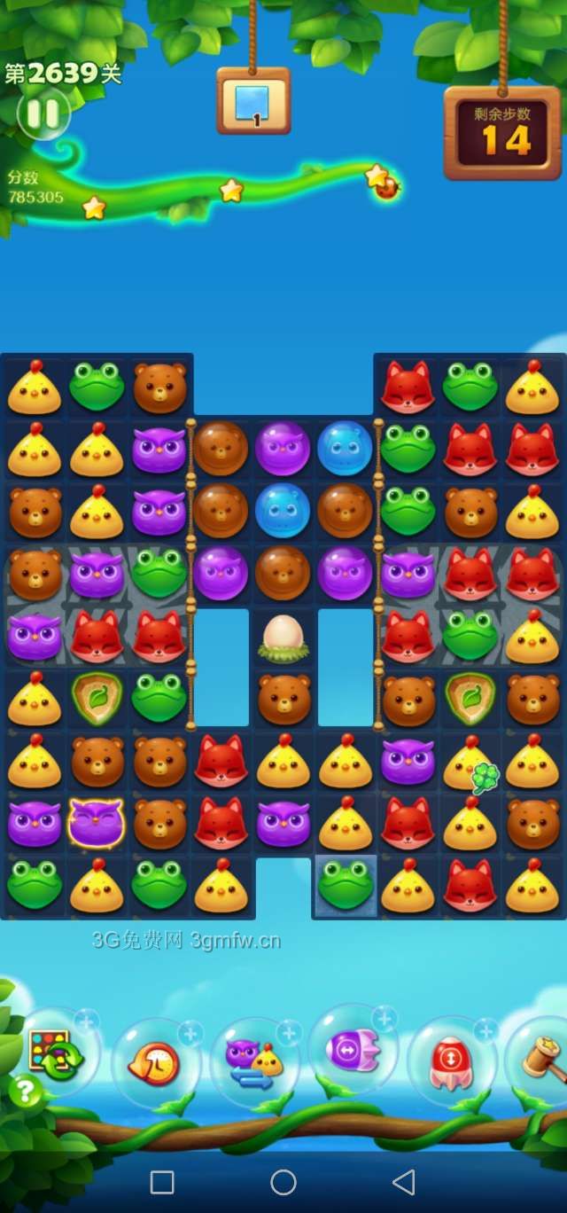 开局运气好,用了一个限时强制交换把两个魔力鸟移动到了一起,最后剩十多步过关。只能等运气,不然没个玩。