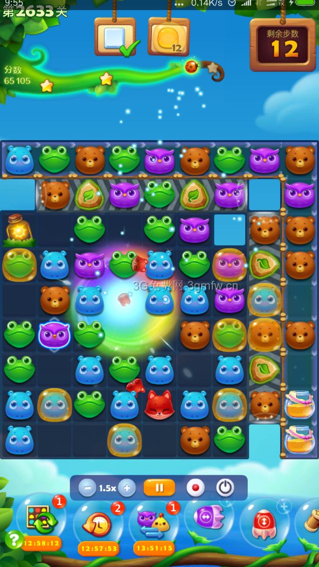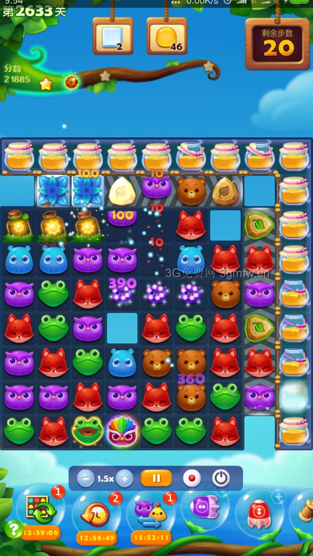 困难关的确是够困难的,蜂蜜是个大问题,尤其右下角的蜜罐,用了一个魔力棒才过关,运气很重要!