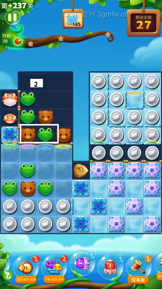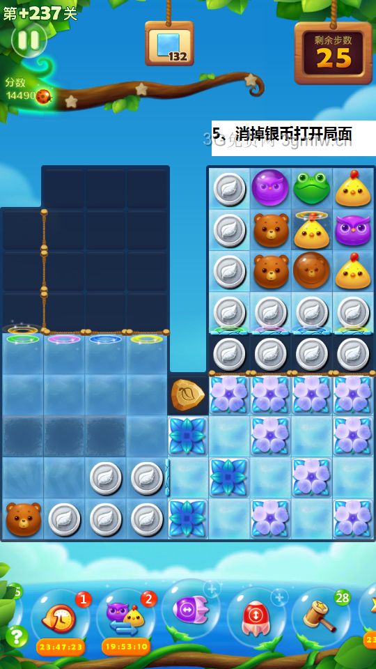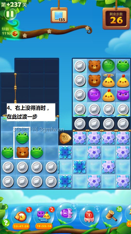 开心消消乐第+237关怎么打?开心消消乐是消除Q萌可爱的小动物们,将三个及以上相同颜色的小动物连成一条直线即可消除,老少皆宜!不会闯关的玩家快来看看G7小编带来的第+237关攻略吧!