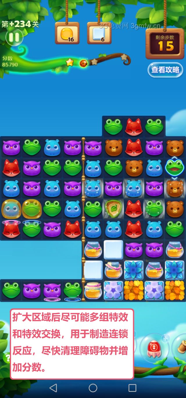 2、达到通关要求之后剩余步数会随机形成特效获得大量额外积分;