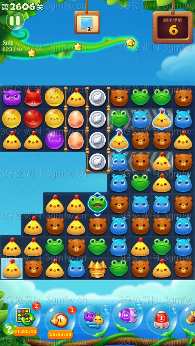 开心消消乐第2606关怎么打?开心消消乐是消除Q萌可爱的小动物们,将三个及以上相同颜色的小动物连成一条直线即可消除,老少皆宜!不会闯关的玩家快来看看G7小编带来的第2606关攻略吧!