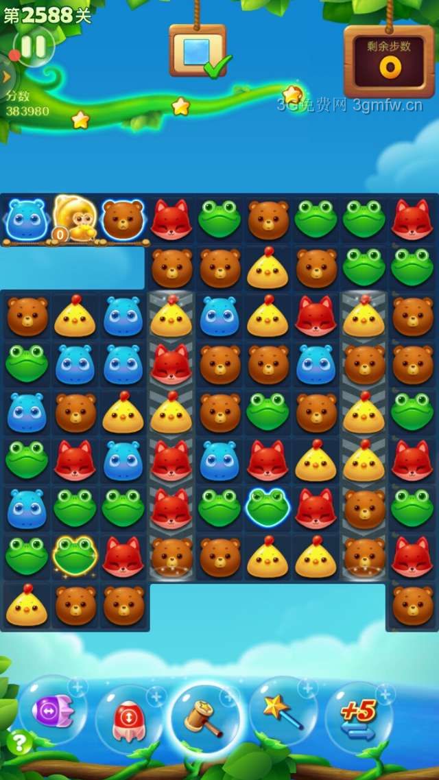 开心消消乐第2588关怎么打?开心消消乐是消除Q萌可爱的小动物们,将三个及以上相同颜色的小动物连成一条直线即可消除,老少皆宜!不会闯关的玩家快来看看G7小编带来的第2588关攻略吧!