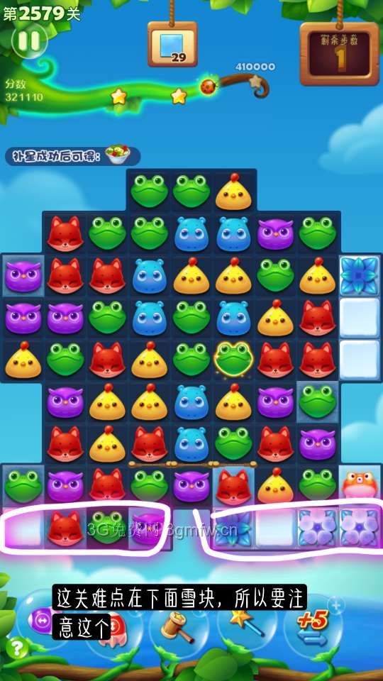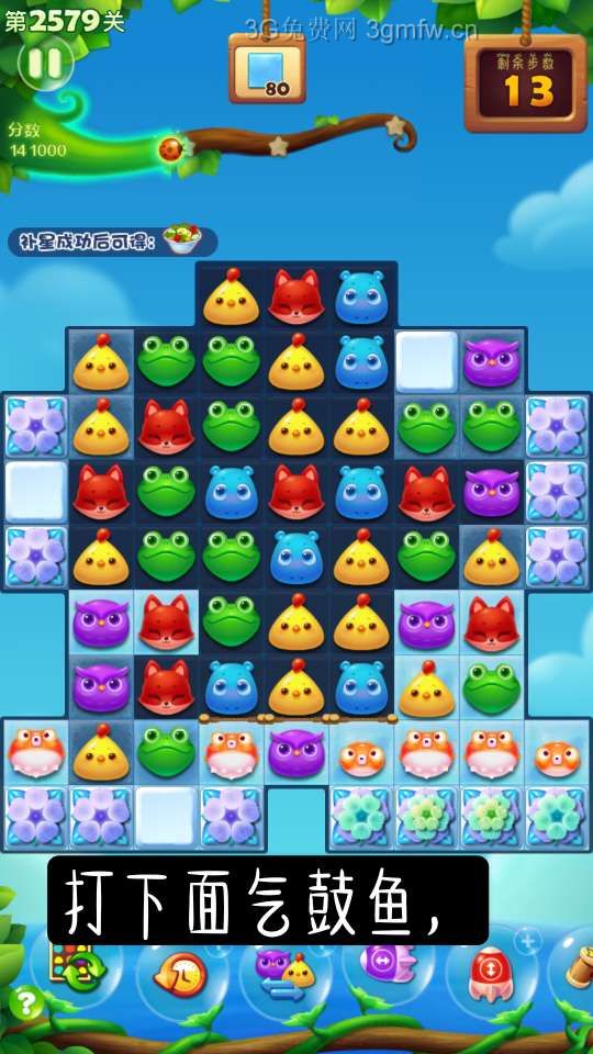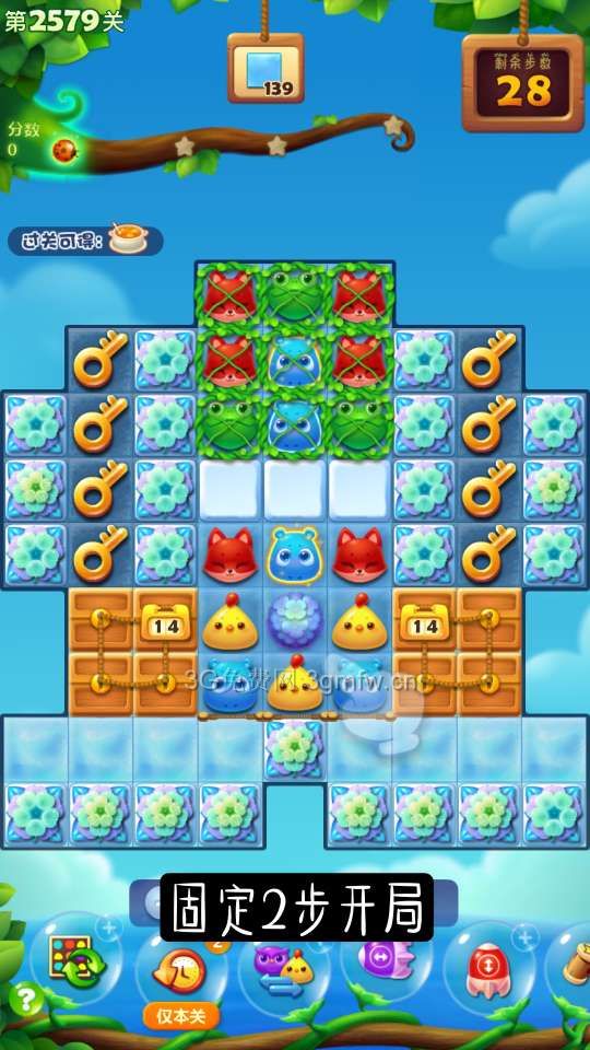开心消消乐第2579关怎么打?开心消消乐是消除Q萌可爱的小动物们,将三个及以上相同颜色的小动物连成一条直线即可消除,老少皆宜!不会闯关的玩家快来看看G7小编带来的第2579关攻略吧!