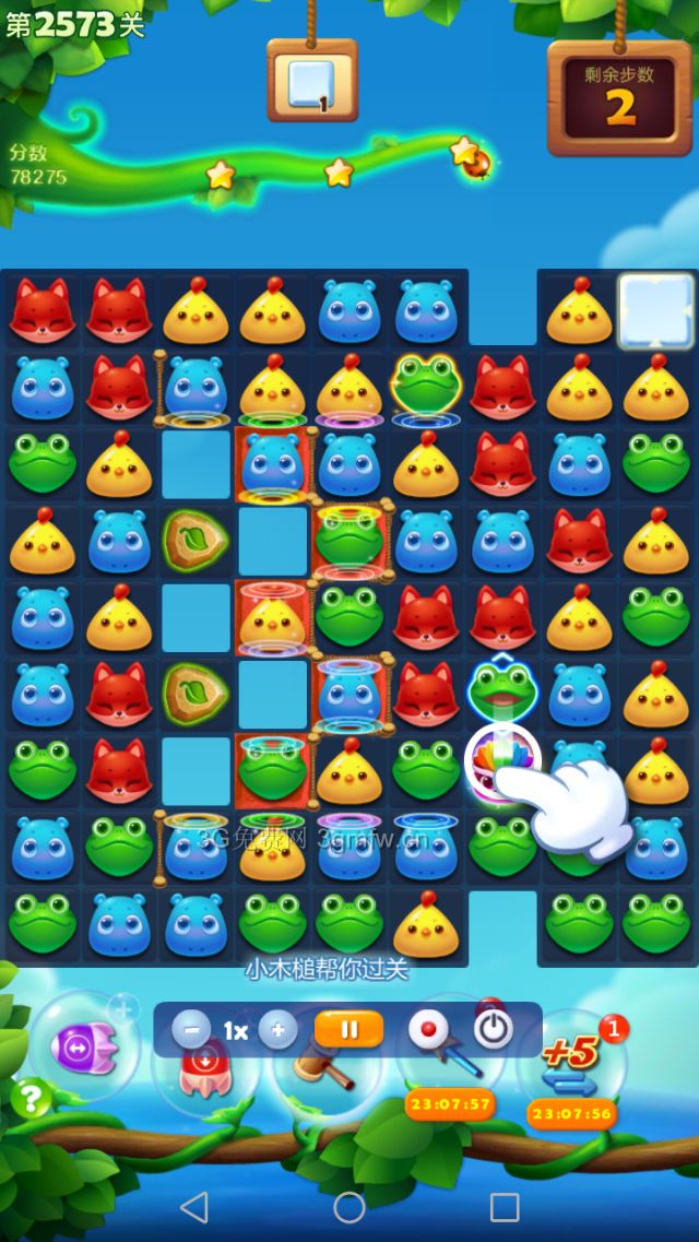 开心消消乐第2573关怎么打?开心消消乐是消除Q萌可爱的小动物们,将三个及以上相同颜色的小动物连成一条直线即可消除,老少皆宜!不会闯关的玩家快来看看G7小编带来的第2573关攻略吧!