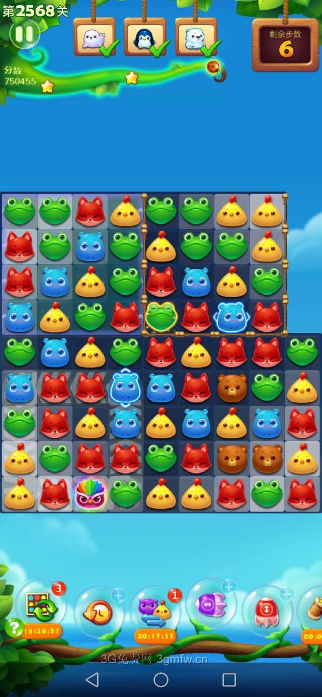 开心消消乐第2568关怎么打?开心消消乐是消除Q萌可爱的小动物们,将三个及以上相同颜色的小动物连成一条直线即可消除,老少皆宜!不会闯关的玩家快来看看G7小编带来的第2568关攻略吧!