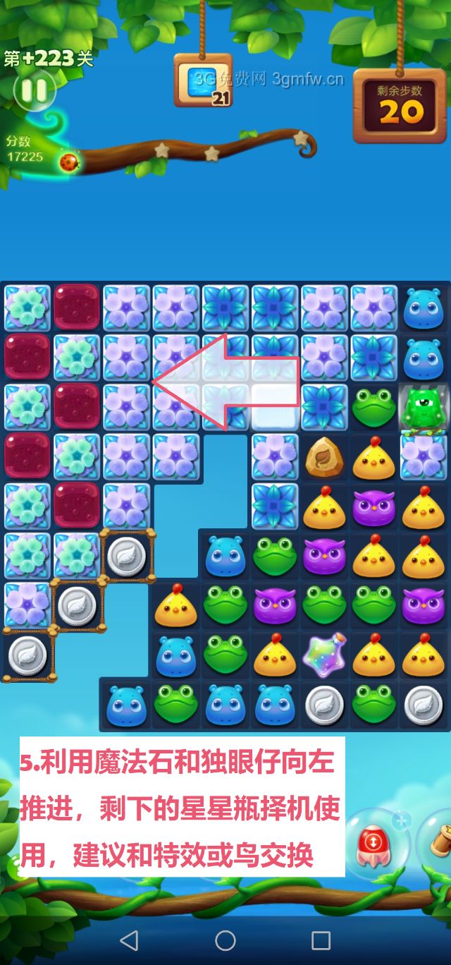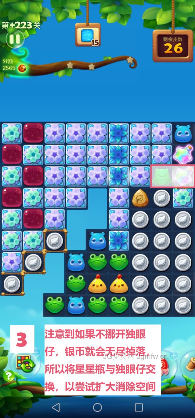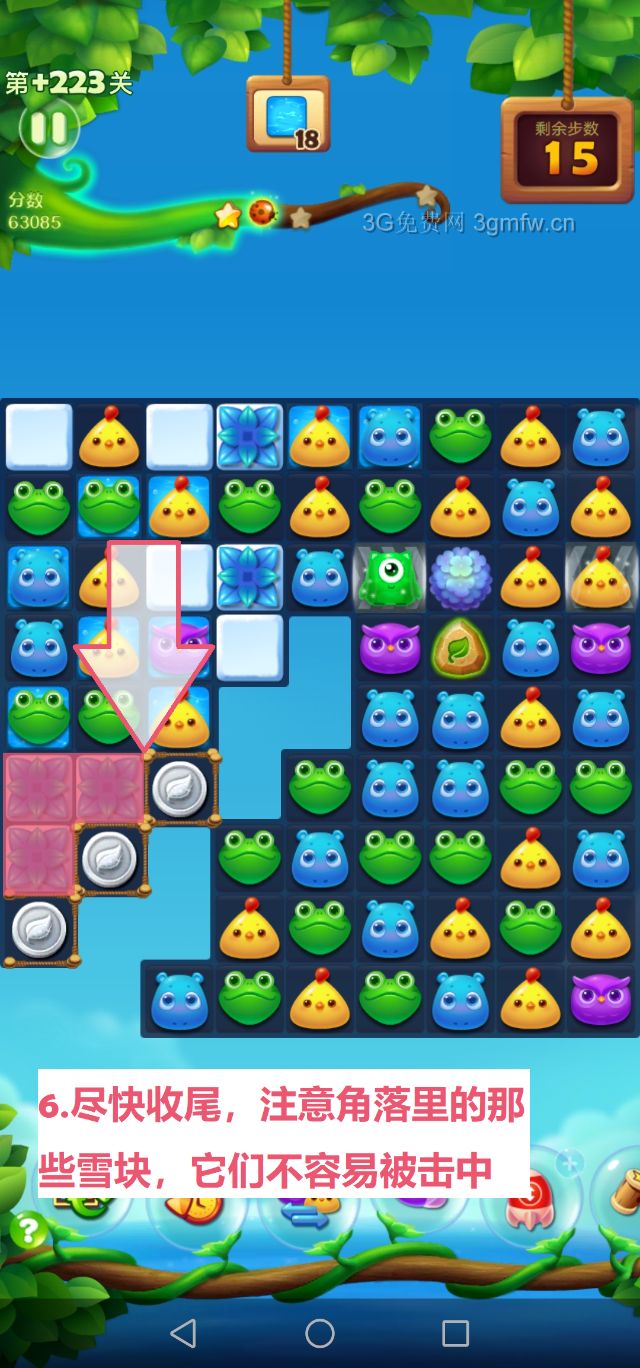 开心消消乐第+223关怎么打?开心消消乐是消除Q萌可爱的小动物们,将三个及以上相同颜色的小动物连成一条直线即可消除,老少皆宜!不会闯关的玩家快来看看G7小编带来的第+223关攻略吧!