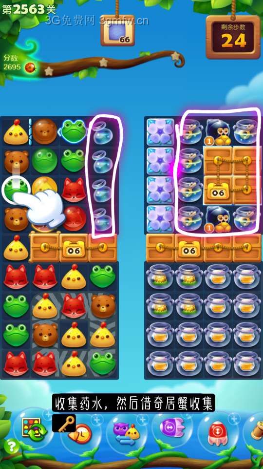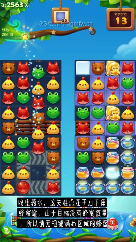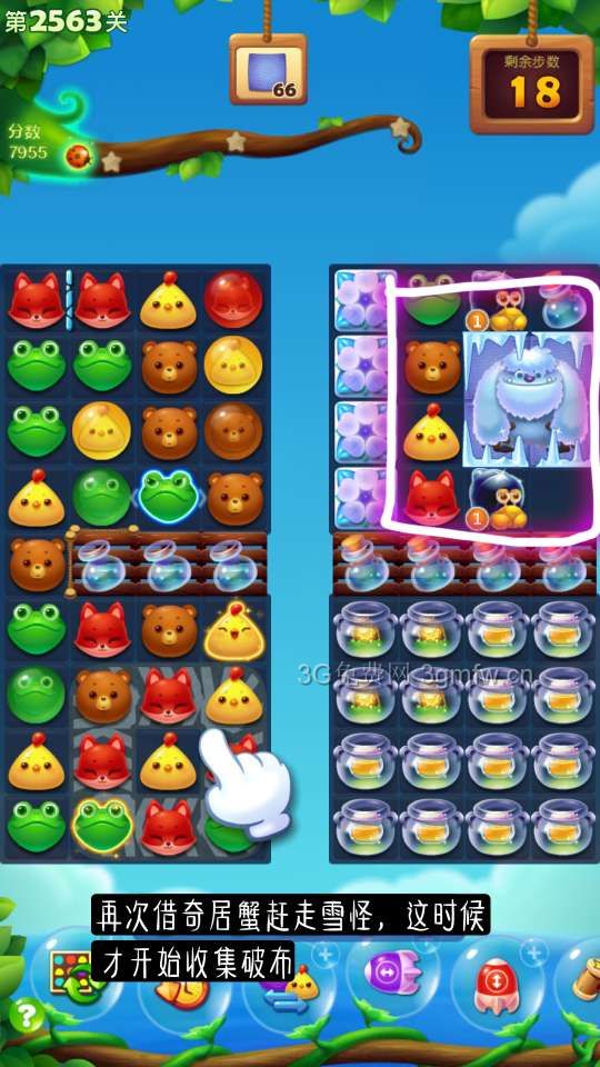 开心消消乐第2563关怎么过?它是一款以超萌超可爱的动物为形象的经典消除游戏,轻松滑动手指即可操作,打发时间的最佳选择。下面G7小编为大家带来第2563关三星攻略,不会闯关的小伙伴快来看看吧!