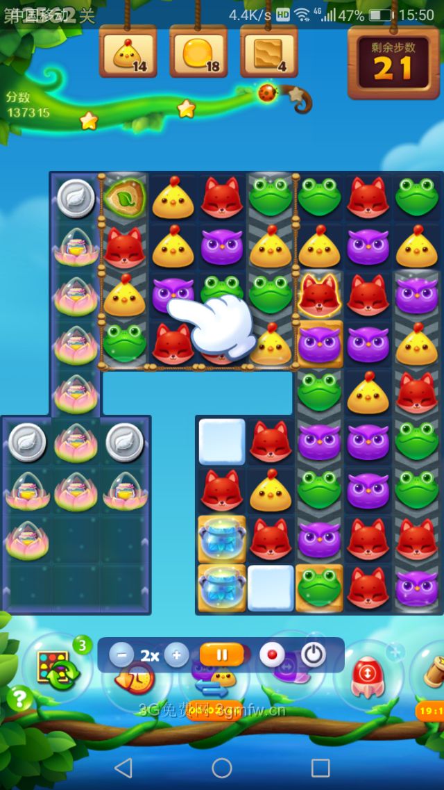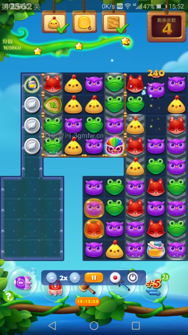 2、达到通关要求之后剩余步数会随机形成特效获得大量额外积分;