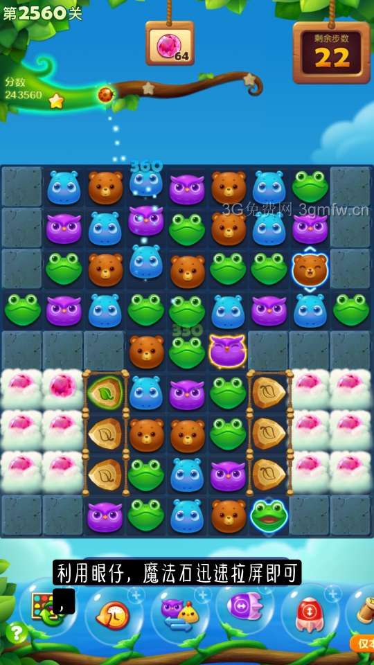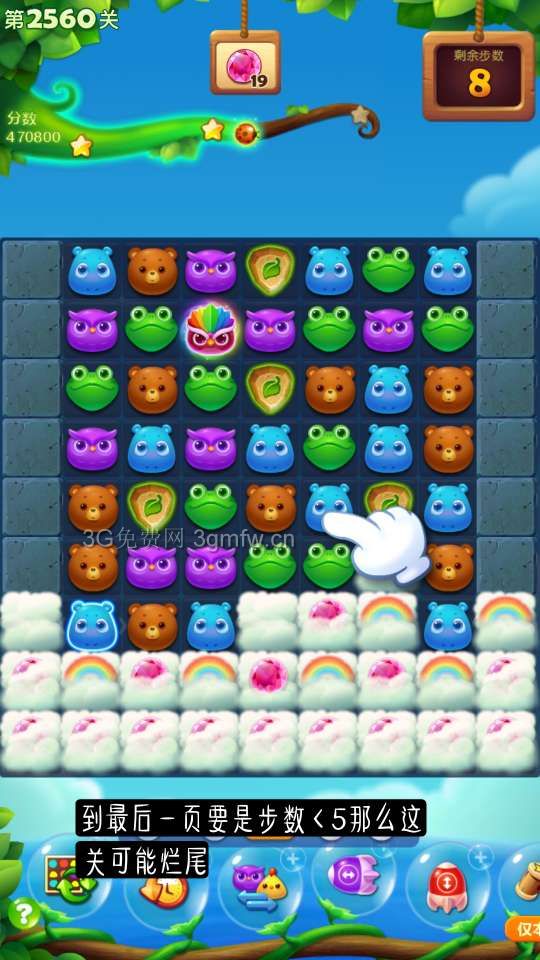 开心消消乐第2560关怎么打?开心消消乐是消除Q萌可爱的小动物们,将三个及以上相同颜色的小动物连成一条直线即可消除,老少皆宜!不会闯关的玩家快来看看G7小编带来的第2560关攻略吧!