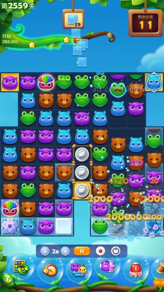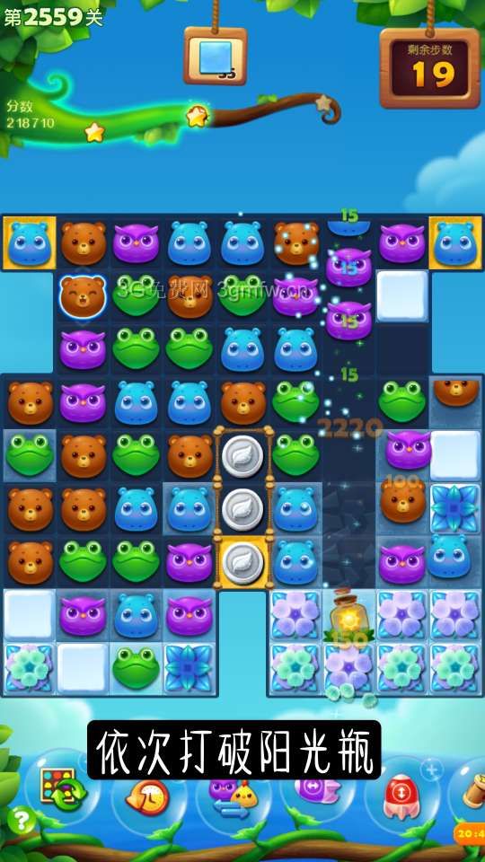 开心消消乐第2559关怎么打?开心消消乐是消除Q萌可爱的小动物们,将三个及以上相同颜色的小动物连成一条直线即可消除,老少皆宜!不会闯关的玩家快来看看G7小编带来的第2559关攻略吧!