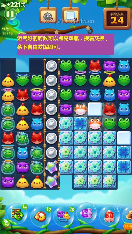 开心消消乐第+221关怎么过?它是一款以超萌超可爱的动物为形象的经典消除游戏,轻松滑动手指即可操作,打发时间的最佳选择。下面G7小编为大家带来第+221关三星攻略,不会闯关的小伙伴快来看看吧!