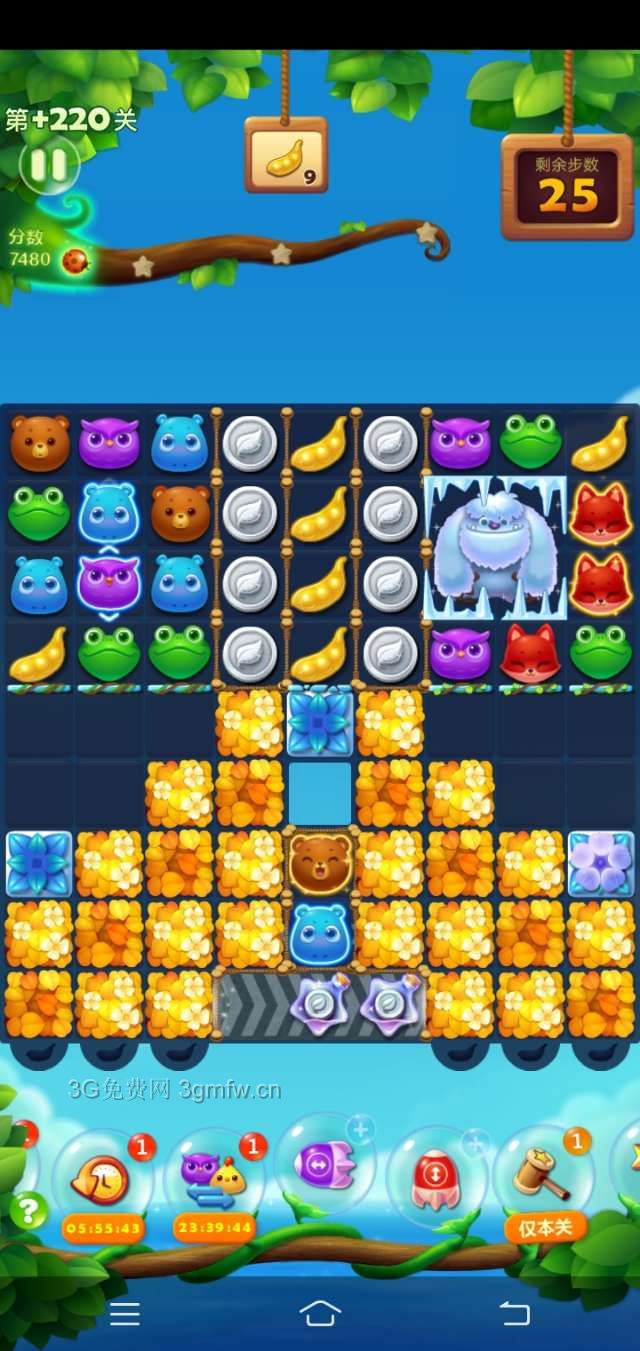 开心消消乐第+220关怎么打?开心消消乐是消除Q萌可爱的小动物们,将三个及以上相同颜色的小动物连成一条直线即可消除,老少皆宜!不会闯关的玩家快来看看G7小编带来的第+220关攻略吧!