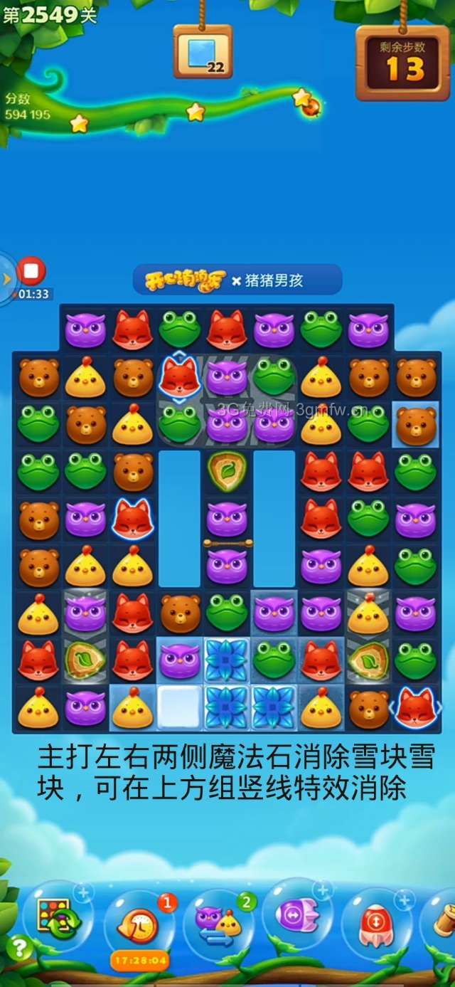 开心消消乐第2549关怎么打?开心消消乐是消除Q萌可爱的小动物们,将三个及以上相同颜色的小动物连成一条直线即可消除,老少皆宜!不会闯关的玩家快来看看G7小编带来的第2549关攻略吧!