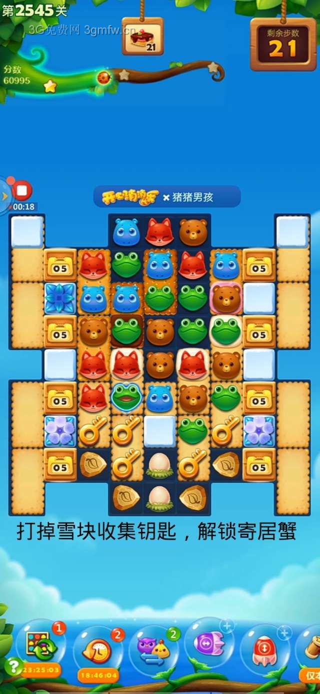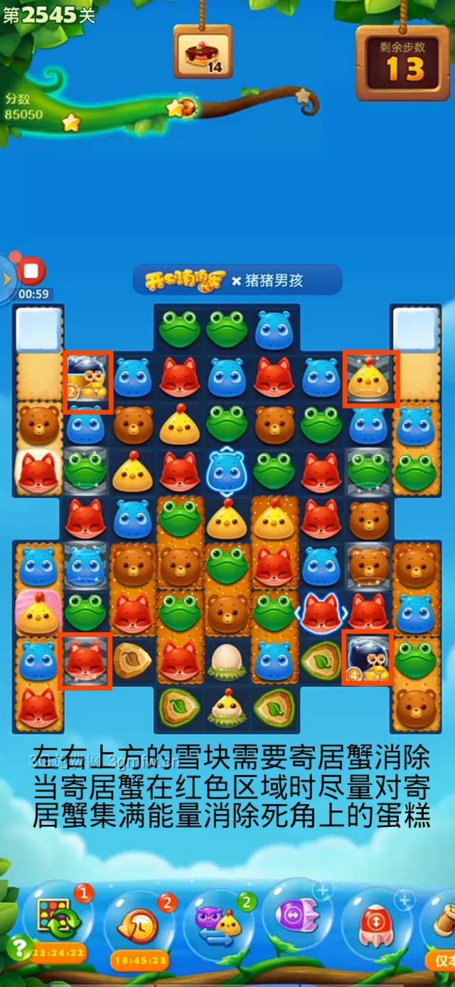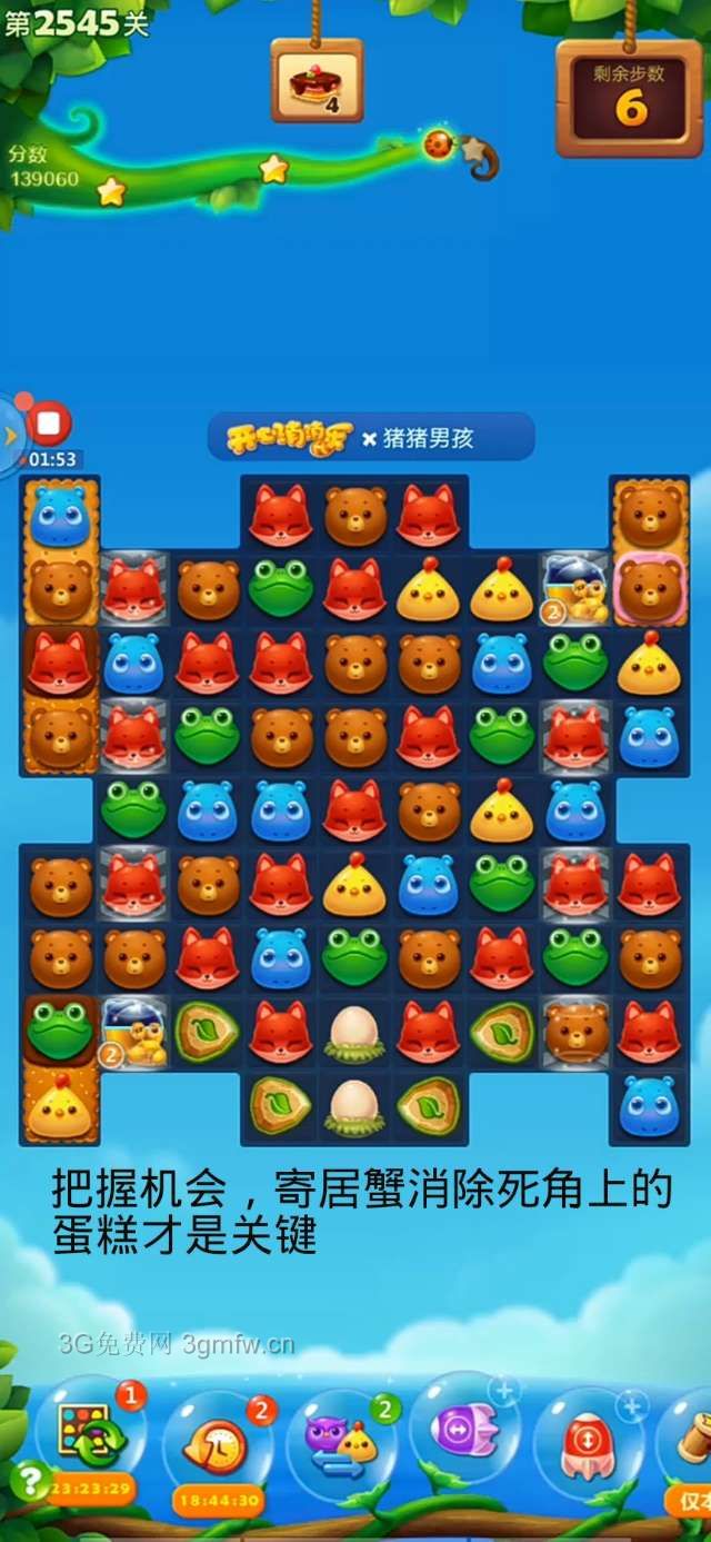 开心消消乐第2545关怎么打?开心消消乐是消除Q萌可爱的小动物们,将三个及以上相同颜色的小动物连成一条直线即可消除,老少皆宜!不会闯关的玩家快来看看G7小编带来的第2545关攻略吧!