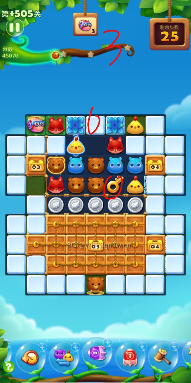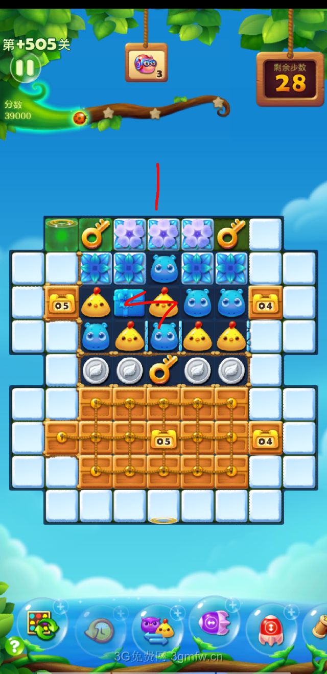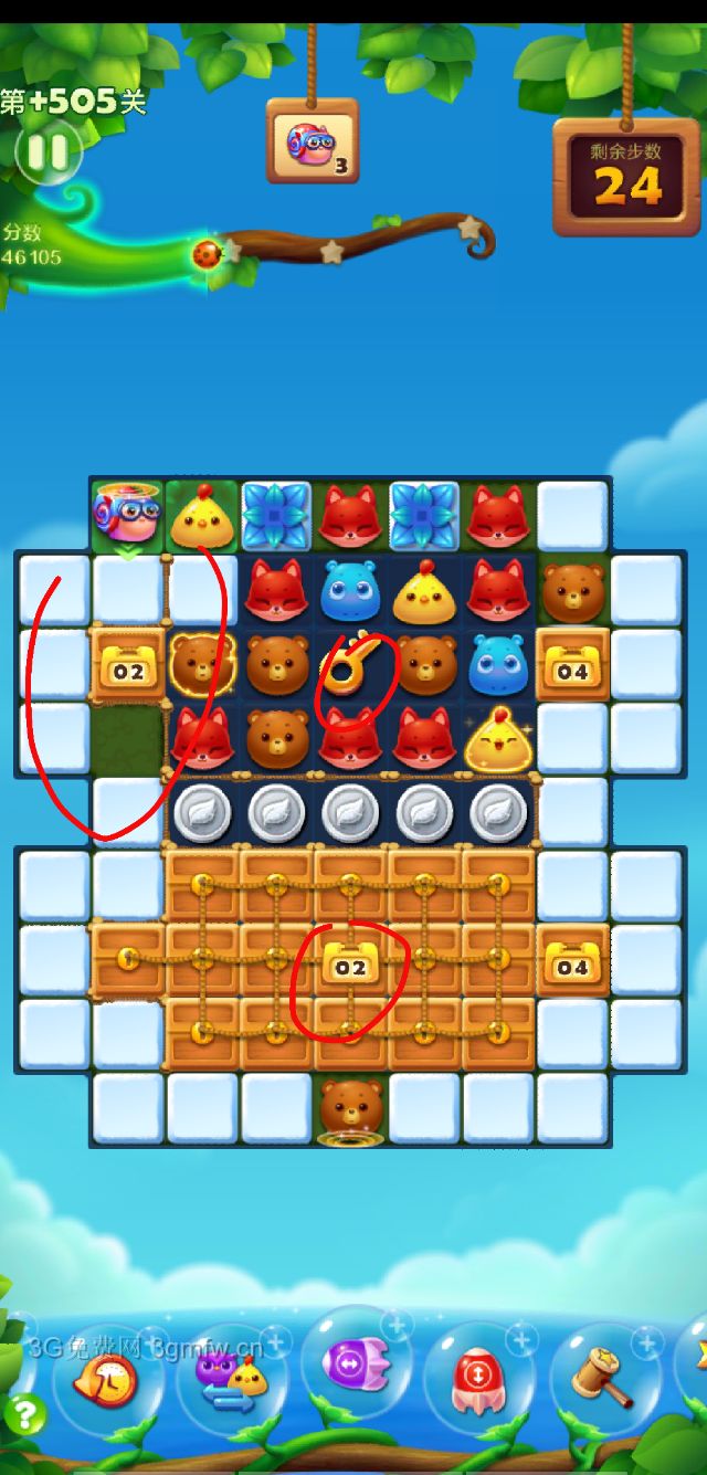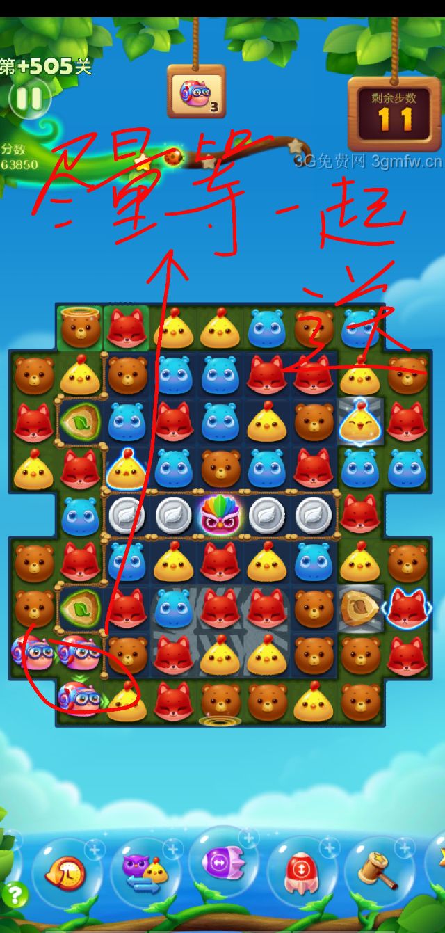 开心消消乐第+505关怎么打?开心消消乐是消除Q萌可爱的小动物们,将三个及以上相同颜色的小动物连成一条直线即可消除,老少皆宜!不会闯关的玩家快来看看G7小编带来的第+505关攻略吧!