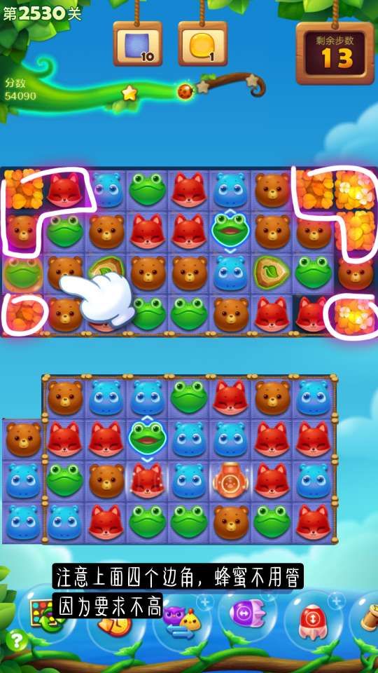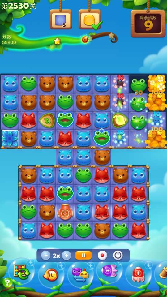 2、达到通关要求之后剩余步数会随机形成特效获得大量额外积分;