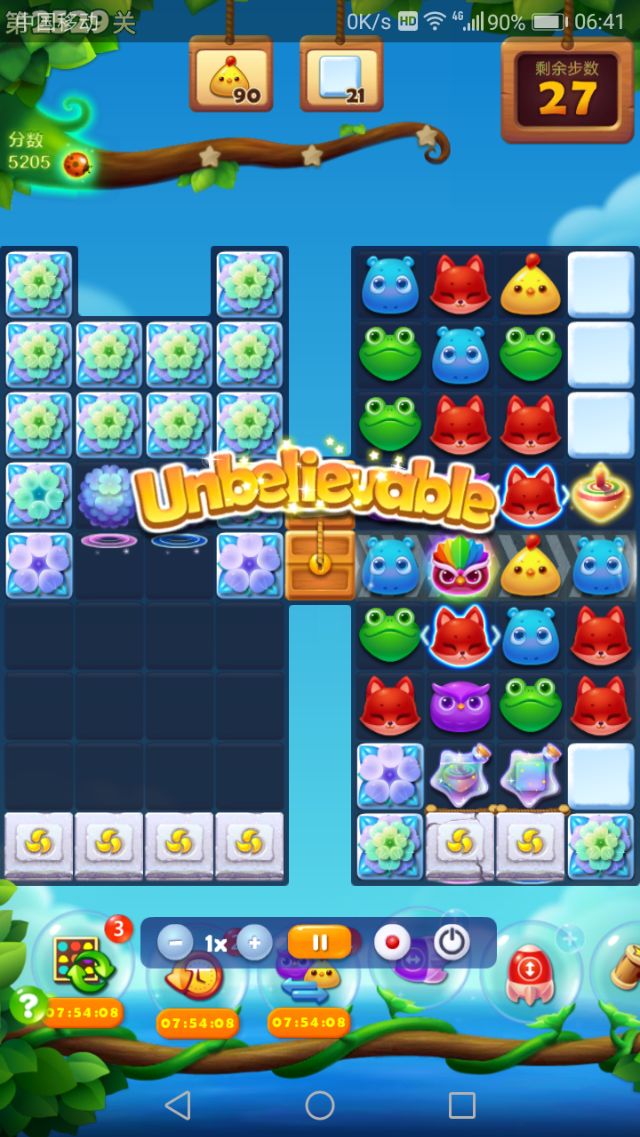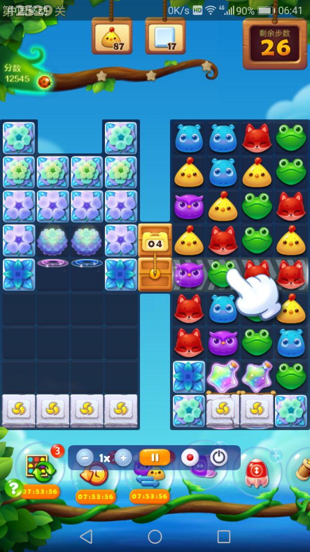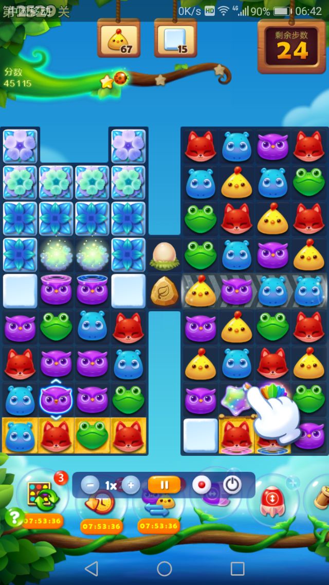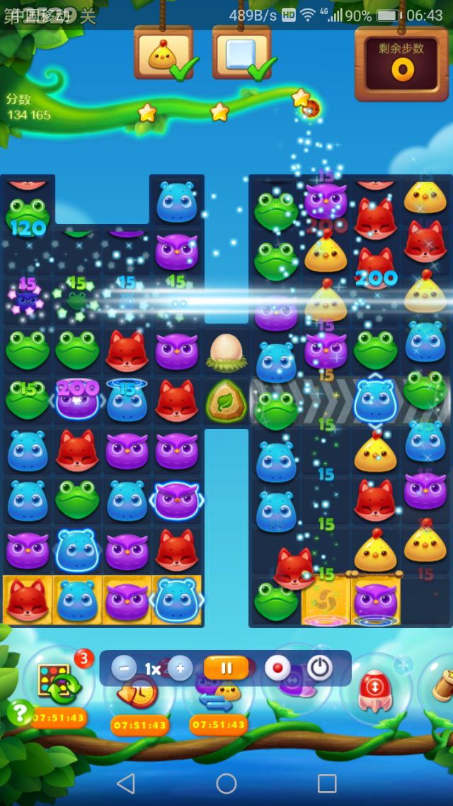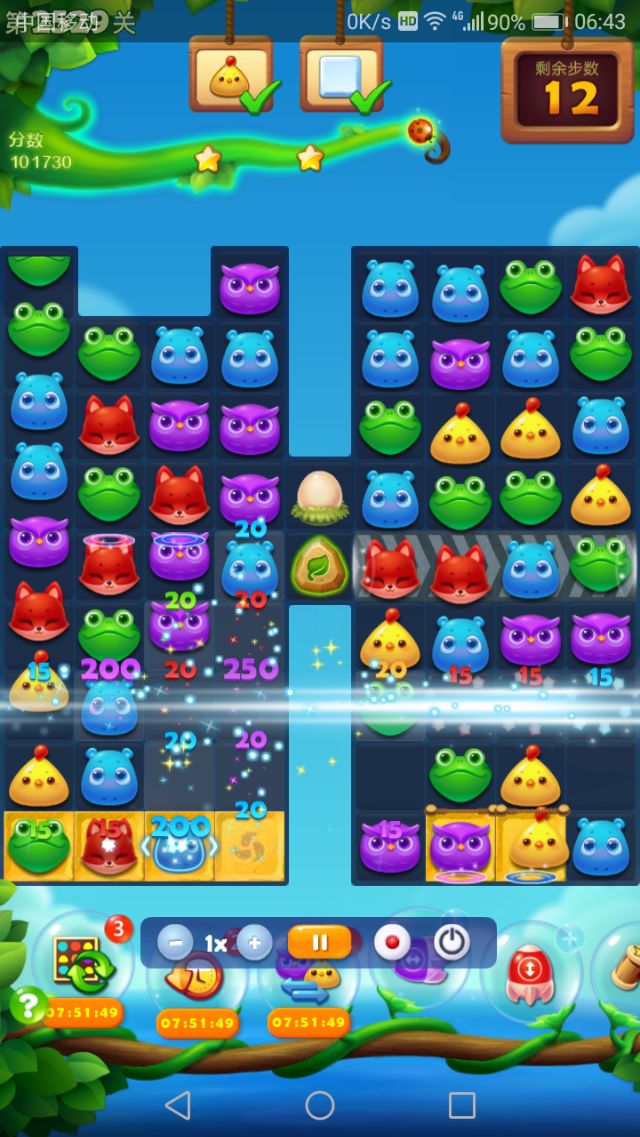 前边用了几次前置魔力鸟,加3步,特效都差好多步没过关,这次只买了加3步,其它的什么也没买,只走一步自动组成魔力鸟加特效,又走一步在星星瓶旁边组个魔力鸟交换清屏之后,系统竟然在另一个星星瓶旁边自动生成一个魔力鸟,交换再次清屏,之后一直在左下方消除,雪块很快就被消除掉了,余13步时一步打掉双层雪块,剩余12步过关,运气真的太重要了!