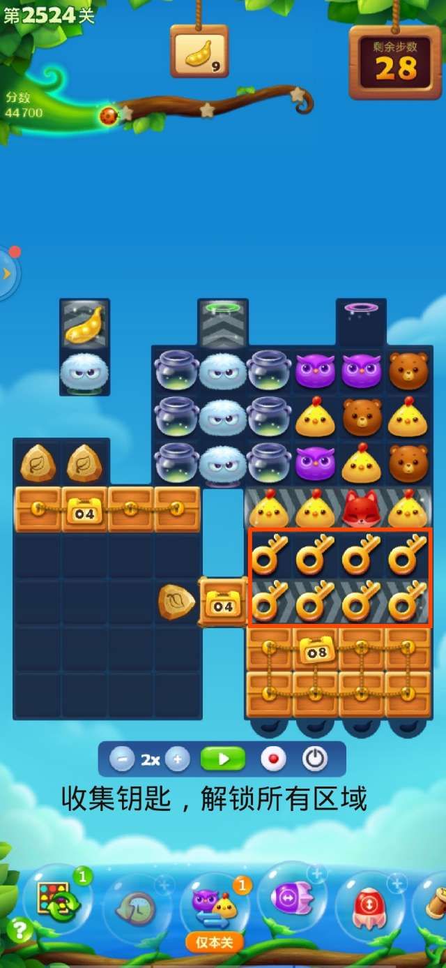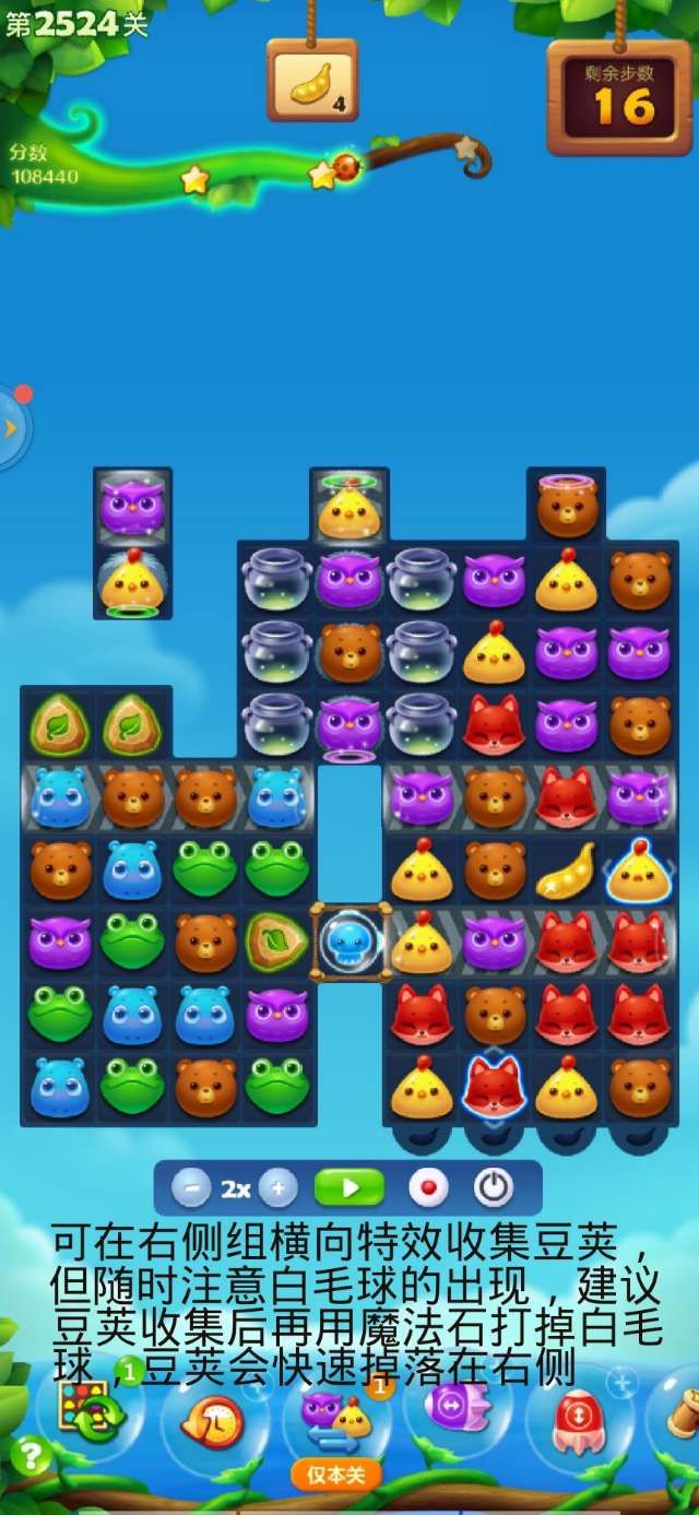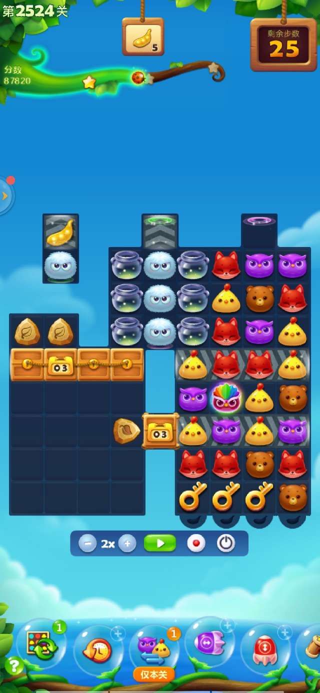 开心消消乐第2524关怎么打?开心消消乐是消除Q萌可爱的小动物们,将三个及以上相同颜色的小动物连成一条直线即可消除,老少皆宜!不会闯关的玩家快来看看G7小编带来的第2524关攻略吧!