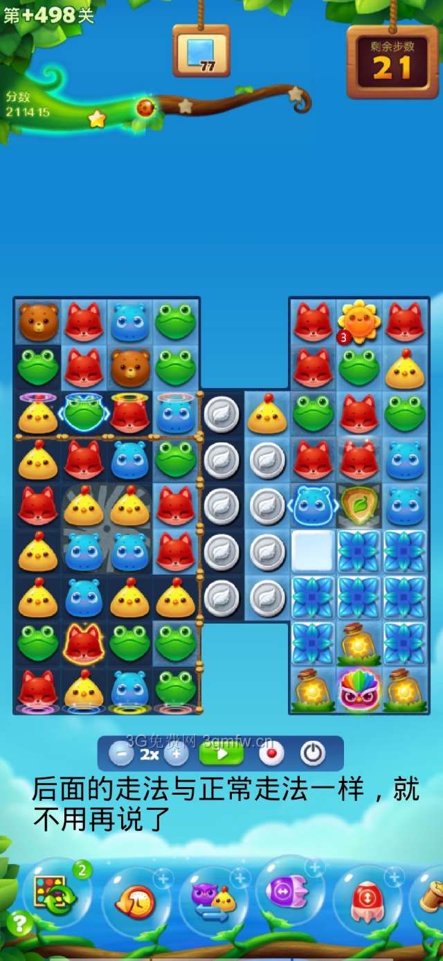 开心消消乐第+498关怎么打?开心消消乐是消除Q萌可爱的小动物们,将三个及以上相同颜色的小动物连成一条直线即可消除,老少皆宜!不会闯关的玩家快来看看G7小编带来的第+498关攻略吧!