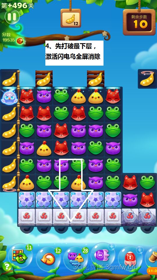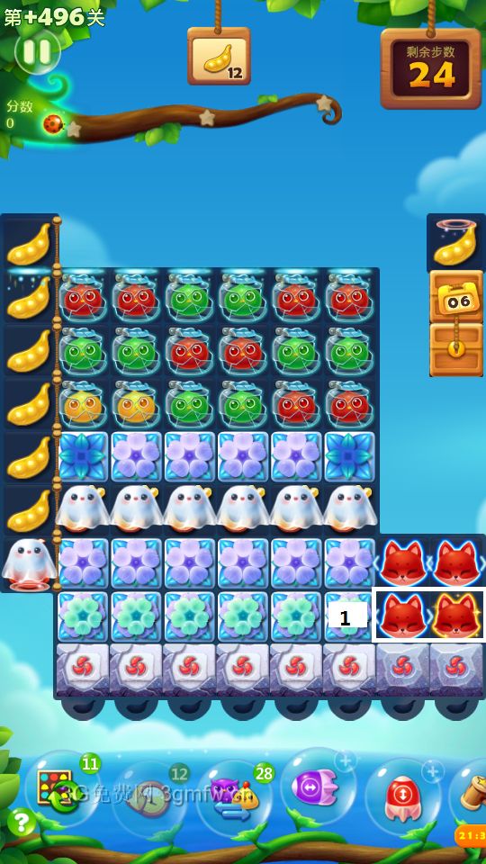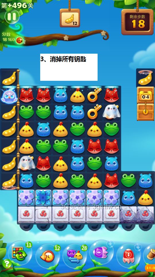 开心消消乐第+496关怎么打?开心消消乐是消除Q萌可爱的小动物们,将三个及以上相同颜色的小动物连成一条直线即可消除,老少皆宜!不会闯关的玩家快来看看G7小编带来的第+496关攻略吧!