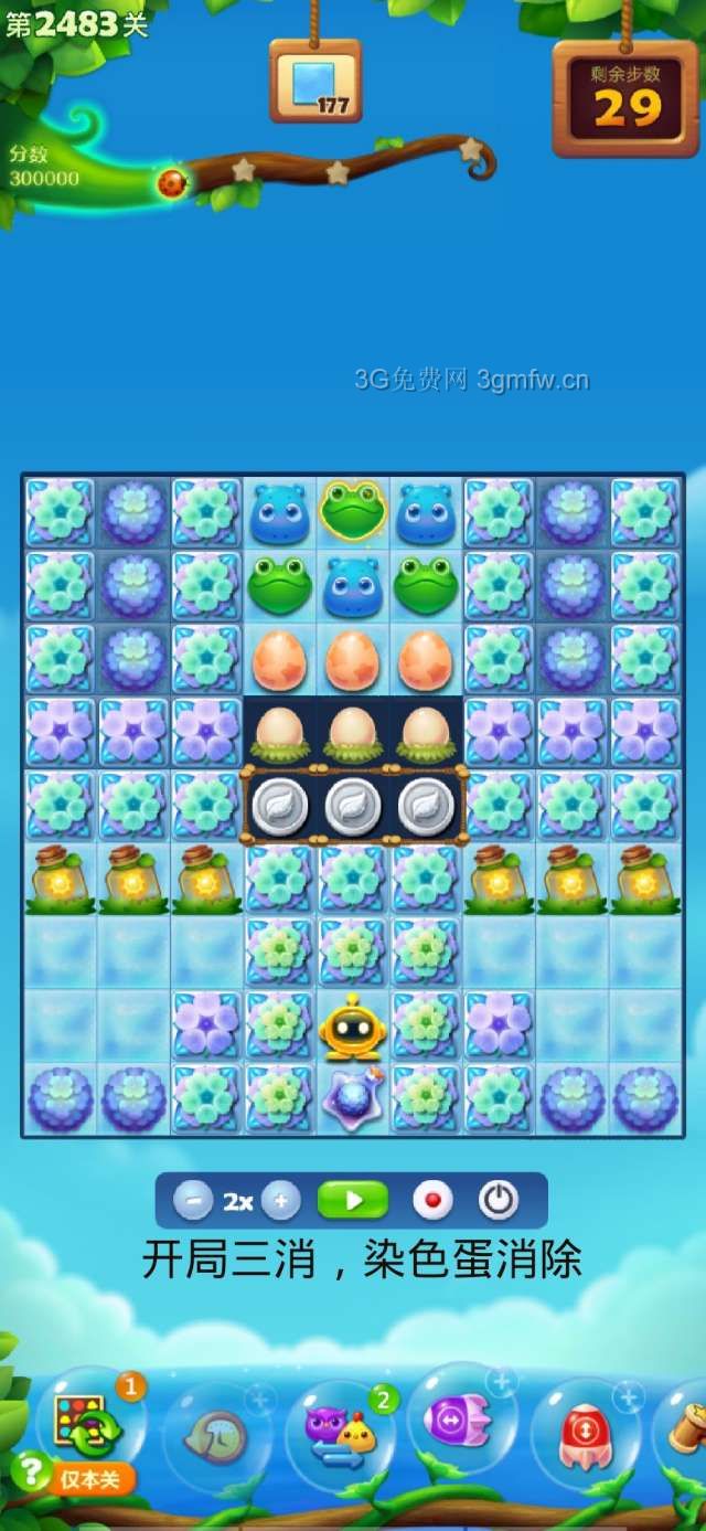 开心消消乐第2483关怎么过?它是一款以超萌超可爱的动物为形象的经典消除游戏,轻松滑动手指即可操作,打发时间的最佳选择。下面G7小编为大家带来第2483关三星攻略,不会闯关的小伙伴快来看看吧!