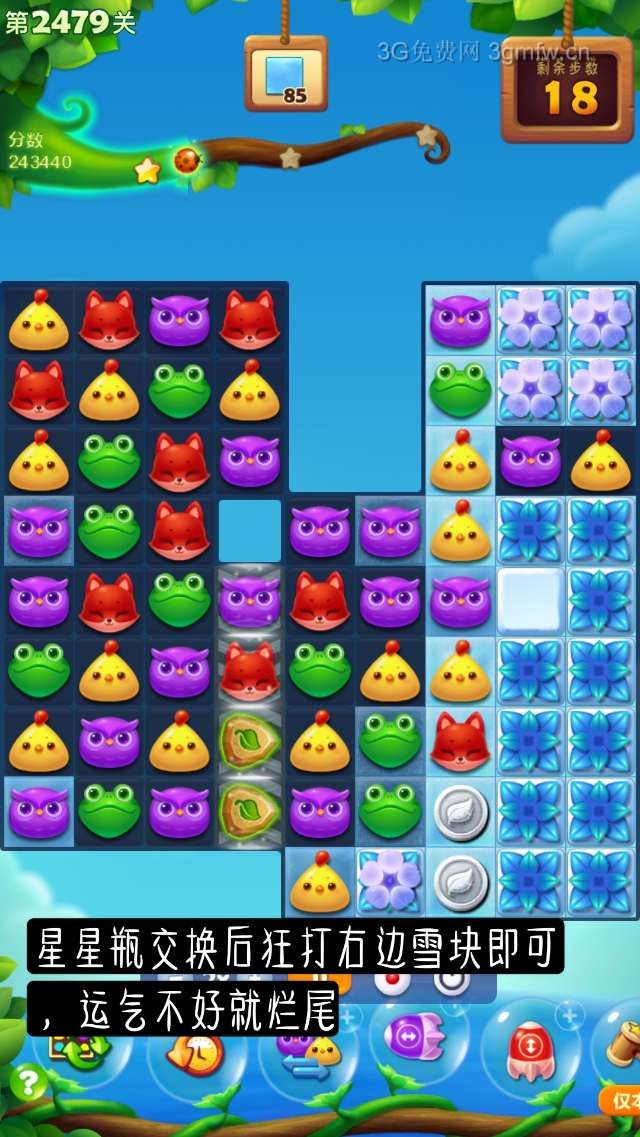开心消消乐第2479关怎么打?开心消消乐是消除Q萌可爱的小动物们,将三个及以上相同颜色的小动物连成一条直线即可消除,老少皆宜!不会闯关的玩家快来看看G7小编带来的第2479关攻略吧!