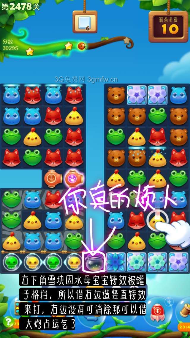 开心消消乐第2478关怎么打?开心消消乐是消除Q萌可爱的小动物们,将三个及以上相同颜色的小动物连成一条直线即可消除,老少皆宜!不会闯关的玩家快来看看G7小编带来的第2478关攻略吧!