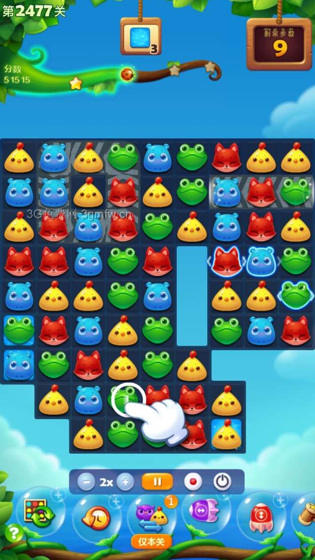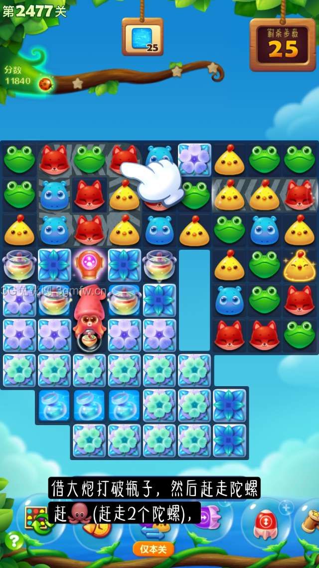开心消消乐第2477关怎么打?开心消消乐是消除Q萌可爱的小动物们,将三个及以上相同颜色的小动物连成一条直线即可消除,老少皆宜!不会闯关的玩家快来看看G7小编带来的第2477关攻略吧!