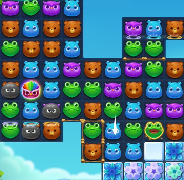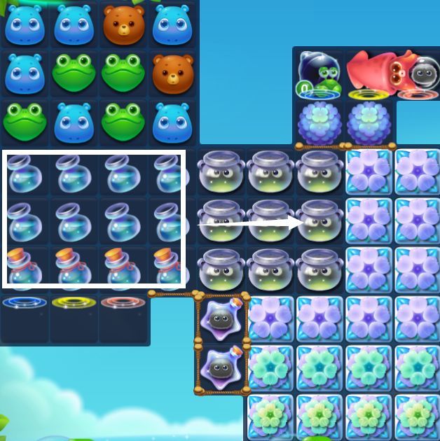 5.当上方掉落口小动物无法形成三消时,交换星星瓶,全屏消除一次,后期三消主力,特效副力,收尾雪块。