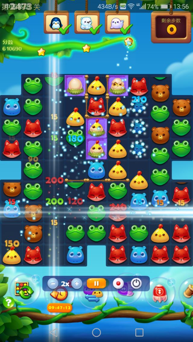 2、达到通关要求之后剩余步数会随机形成特效获得大量额外积分;