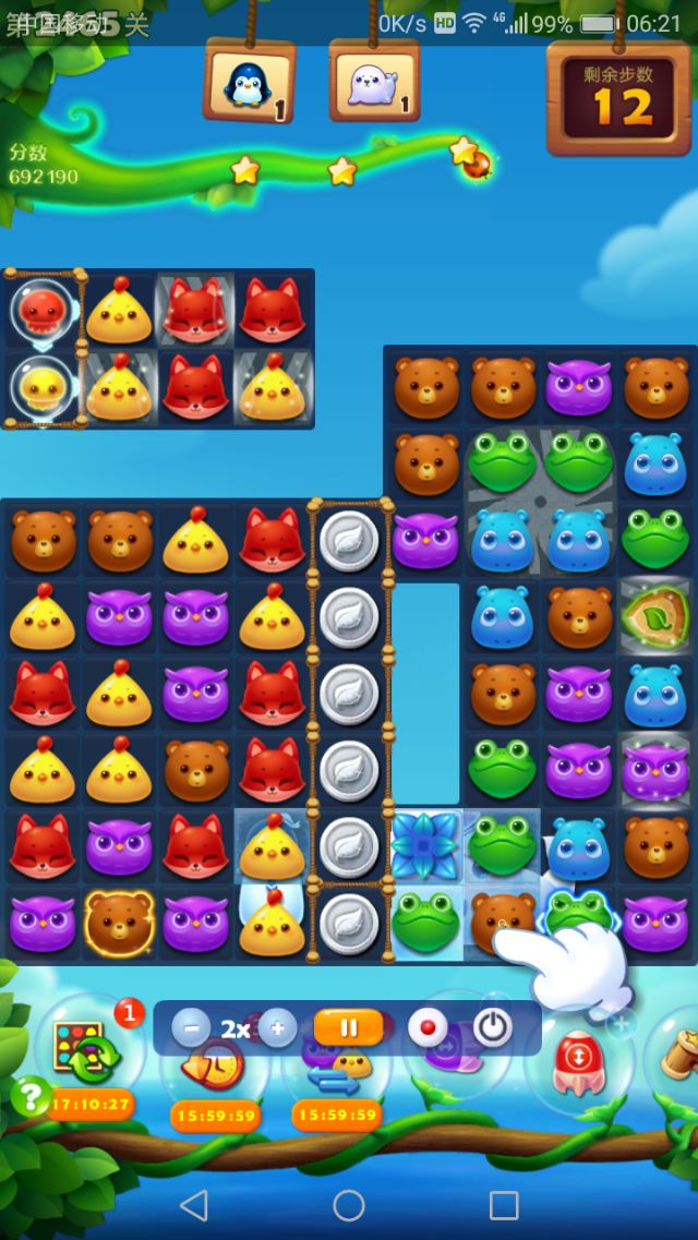 2、达到通关要求之后剩余步数会随机形成特效获得大量额外积分;