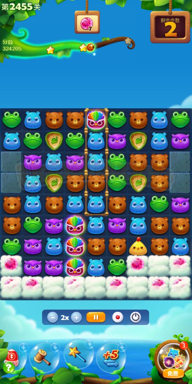 开心消消乐第2455关怎么打?开心消消乐是消除Q萌可爱的小动物们,将三个及以上相同颜色的小动物连成一条直线即可消除,老少皆宜!不会闯关的玩家快来看看G7小编带来的第2455关攻略吧!