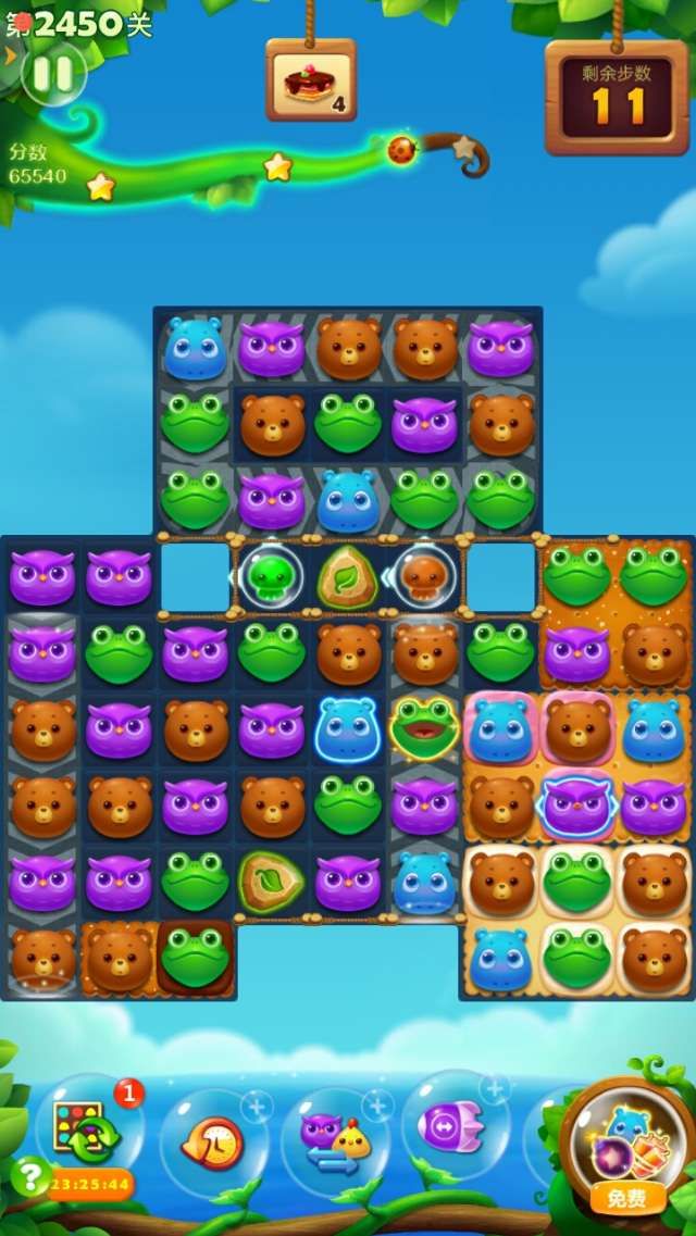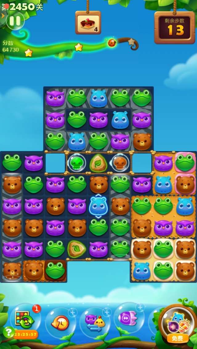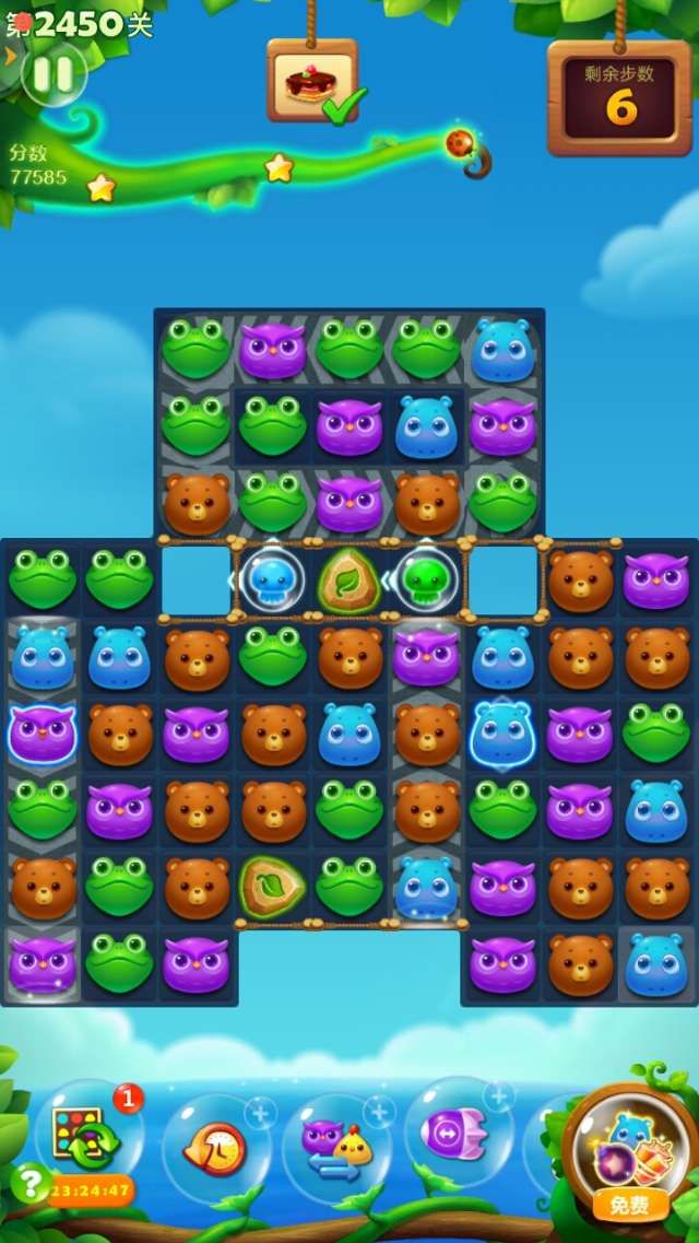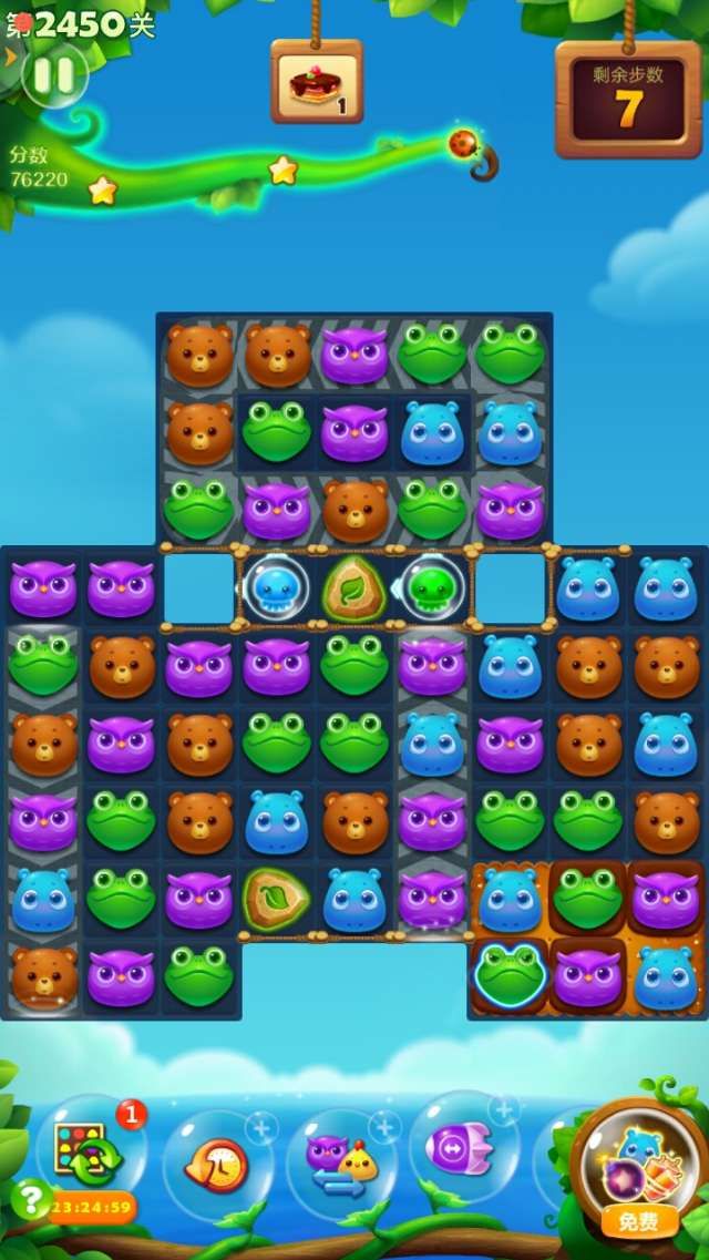 开心消消乐第2450关怎么打?开心消消乐是消除Q萌可爱的小动物们,将三个及以上相同颜色的小动物连成一条直线即可消除,老少皆宜!不会闯关的玩家快来看看G7小编带来的第2450关攻略吧!