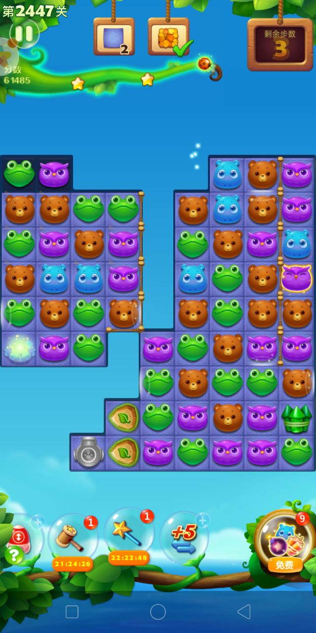 开心消消乐第2447关怎么过?它是一款以超萌超可爱的动物为形象的经典消除游戏,轻松滑动手指即可操作,打发时间的最佳选择。下面G7小编为大家带来第2447关三星攻略,不会闯关的小伙伴快来看看吧!