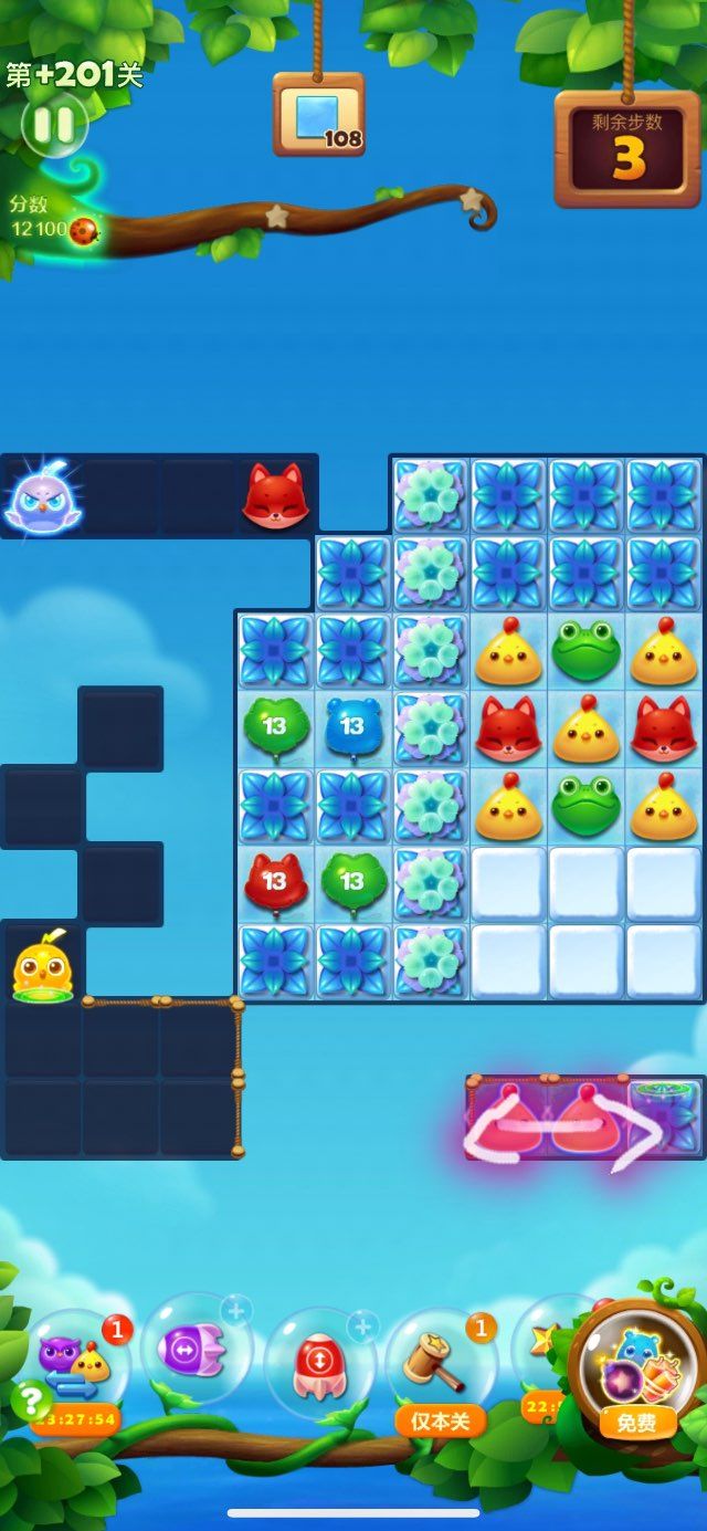 4.右下角两个特效互换,打通最右下角冰块,使闪电鸟落到互为对角线位置。