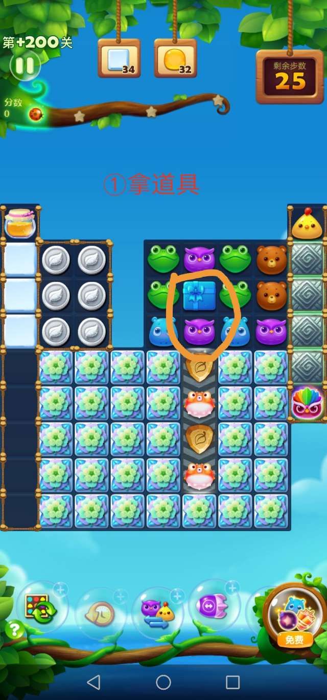 需要注意的是,右侧区域将始终掉落花团,一个花团击打两个目标,一个蜂蜜罐子放出两个蜂蜜,石板打开时可以利用花团。