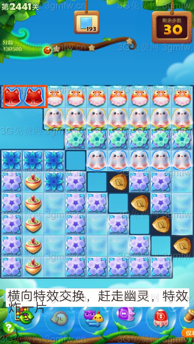 2、达到通关要求之后剩余步数会随机形成特效获得大量额外积分;