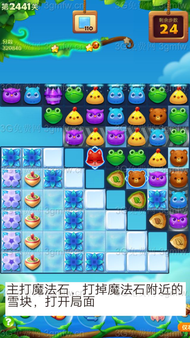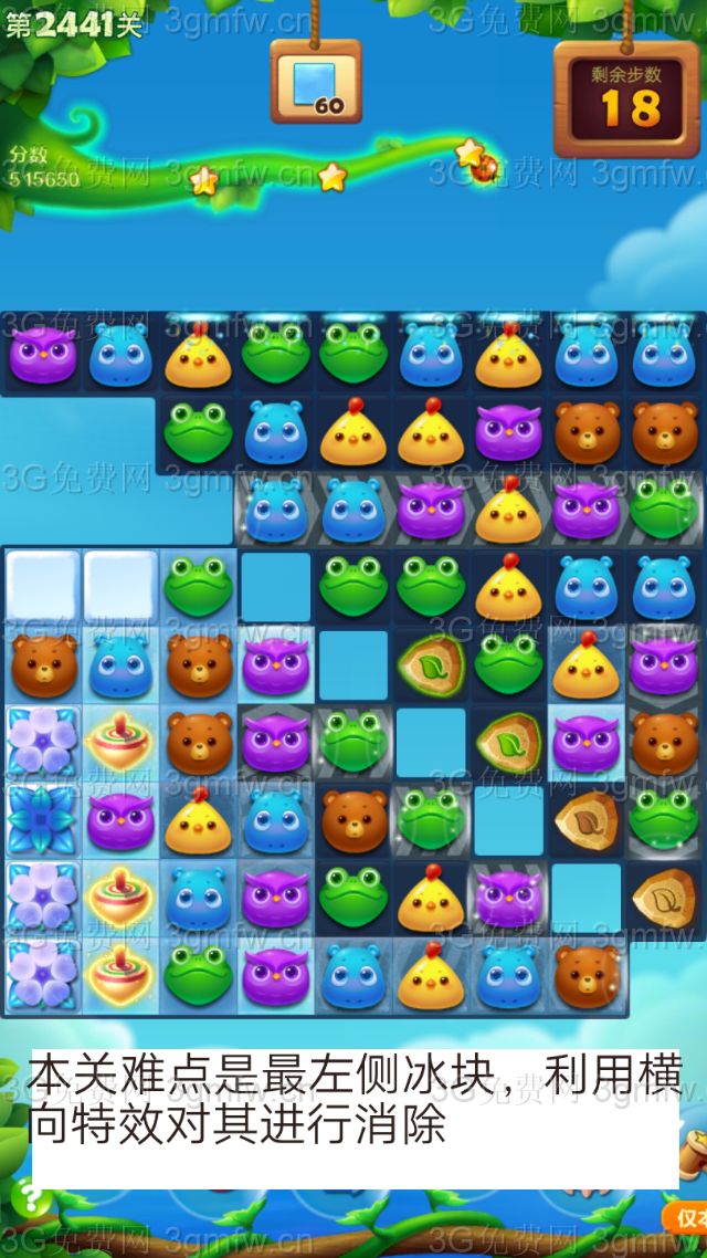 开心消消乐第2441关怎么打?开心消消乐是消除Q萌可爱的小动物们,将三个及以上相同颜色的小动物连成一条直线即可消除,老少皆宜!不会闯关的玩家快来看看G7小编带来的第2441关攻略吧!