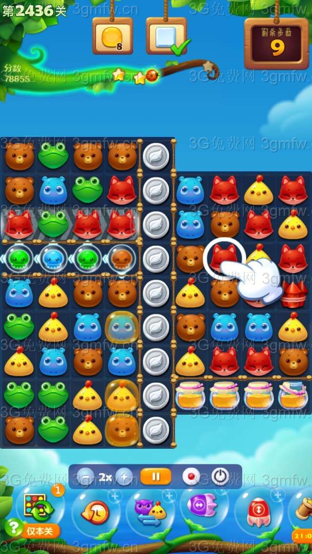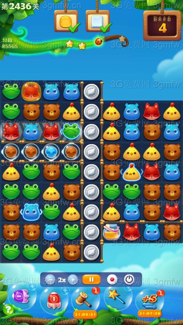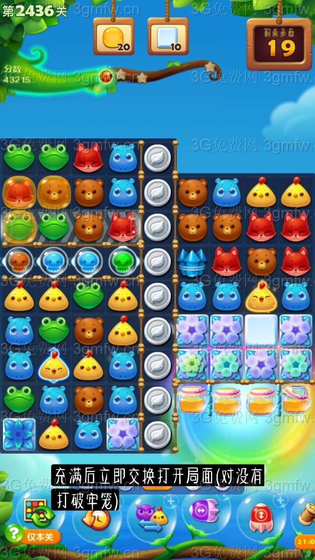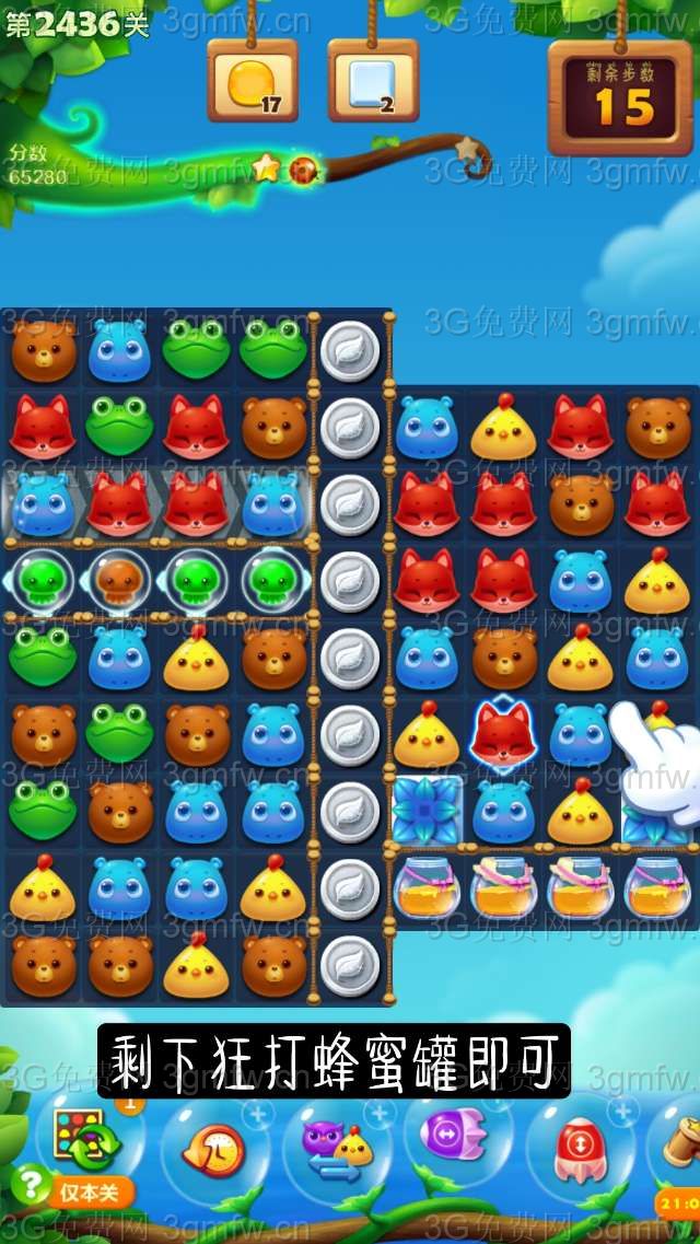 开心消消乐第2436关怎么打?开心消消乐是消除Q萌可爱的小动物们,将三个及以上相同颜色的小动物连成一条直线即可消除,老少皆宜!不会闯关的玩家快来看看G7小编带来的第2436关攻略吧!