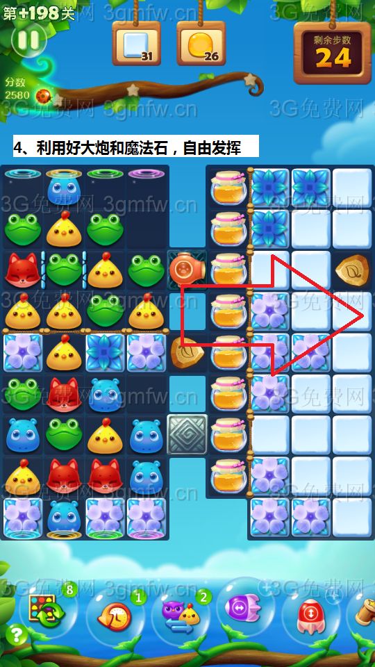 开心消消乐第+198关怎么过?它是一款以超萌超可爱的动物为形象的经典消除游戏,轻松滑动手指即可操作,打发时间的最佳选择。下面G7小编为大家带来第+198关三星攻略,不会闯关的小伙伴快来看看吧!