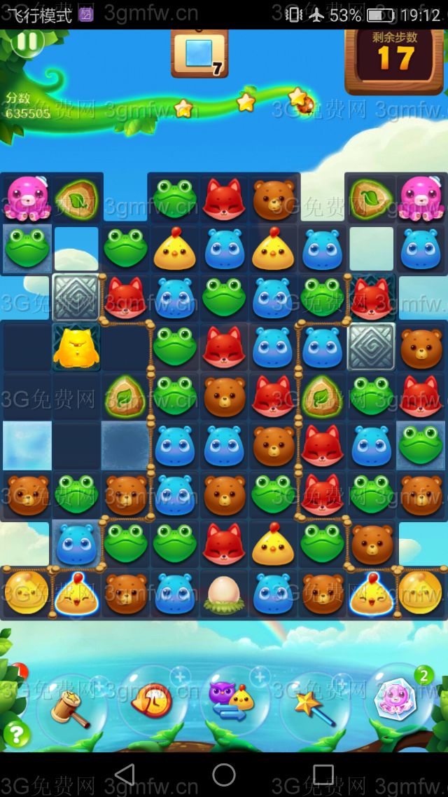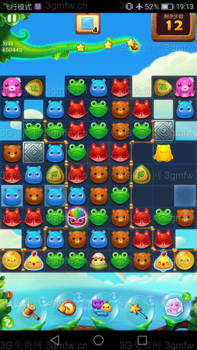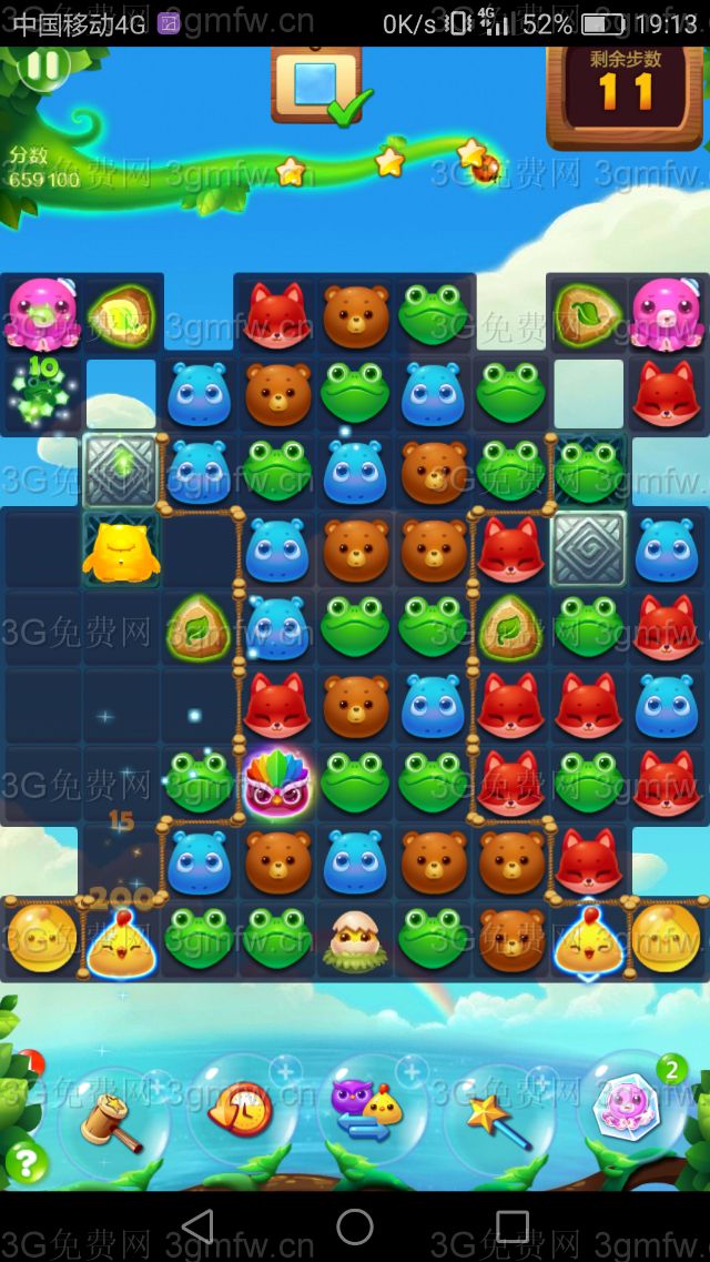 3,左右两边都有一个章鱼,出来的毒液堵住上面,动物落不下来,消除毒液全靠下面的直线特效打到上面的魔法石,魔法石再去打毒液。