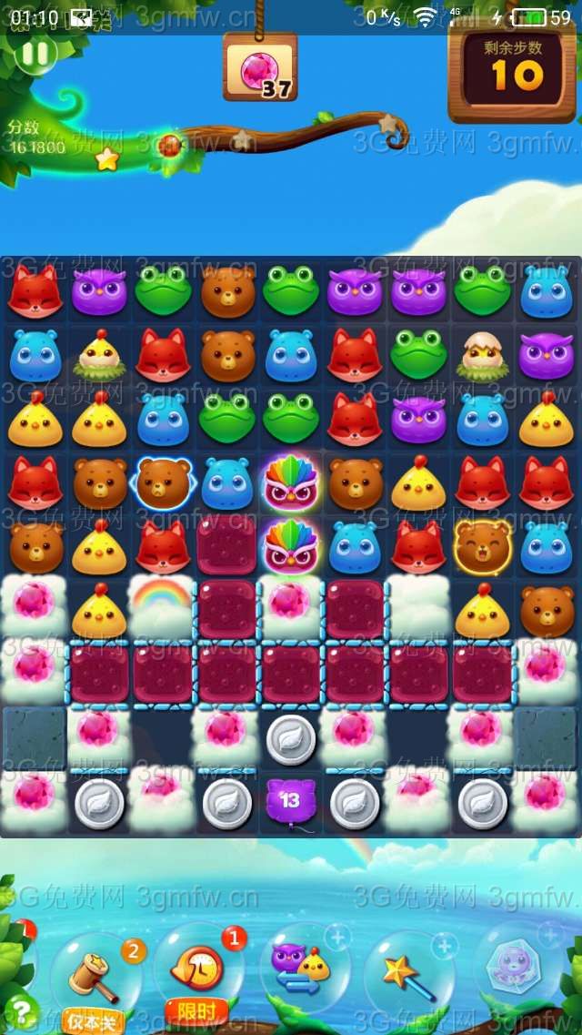 【+112】宝石关,保险起见买上+3.开始得到道具后,章鱼冰建议马上使用,因为往下没有章鱼,有冰也使不上。在往下一格,释放小鸡以后,在魔力鸟边上有个小动物,可以用上魔法棒,这样可以迅速往下,然后是主打小鸡壳,让小鸡翻飞。到了鸡群以后,用上小锤子。双鸟清屏。Game over .