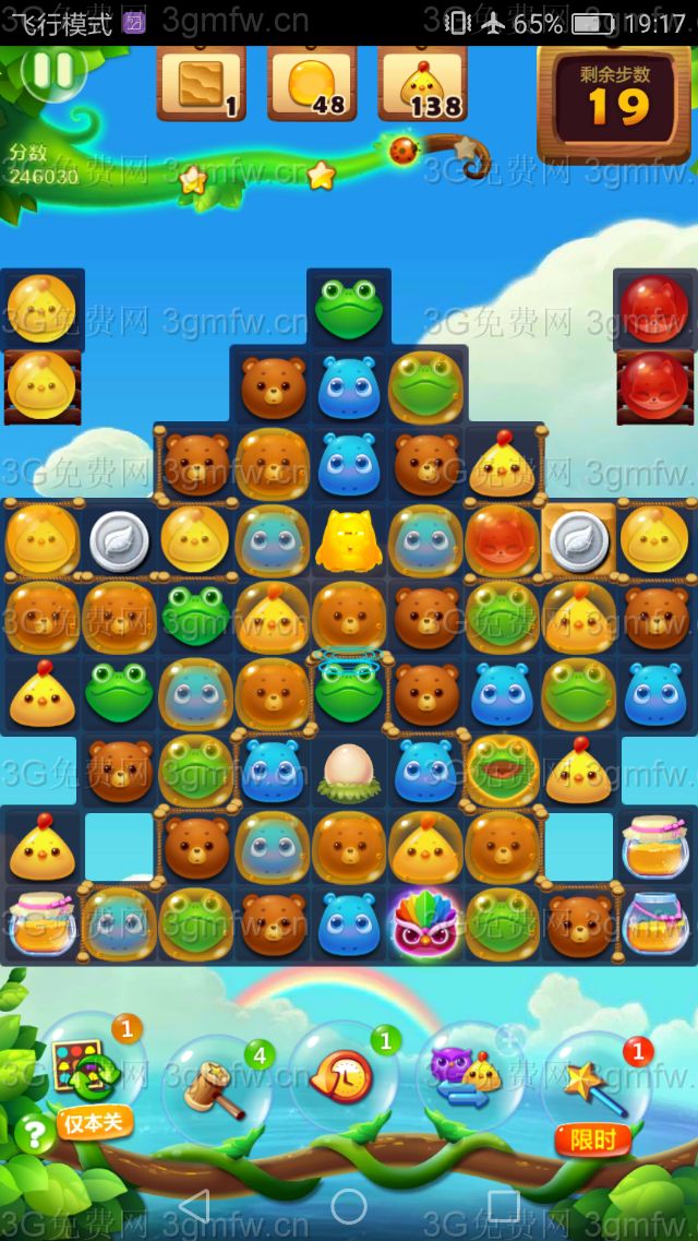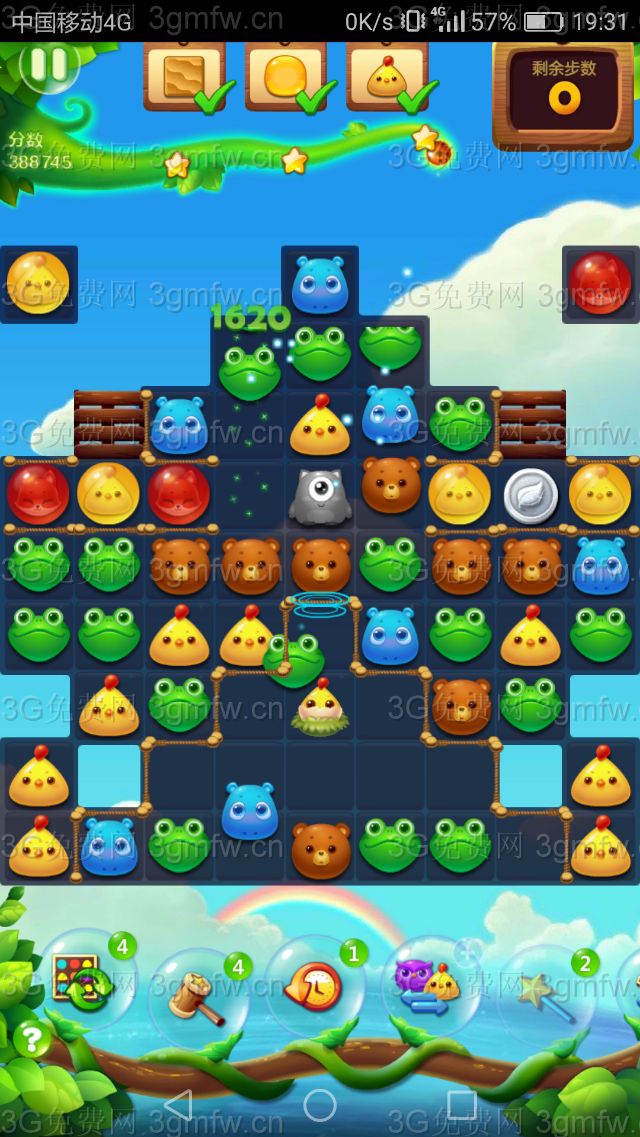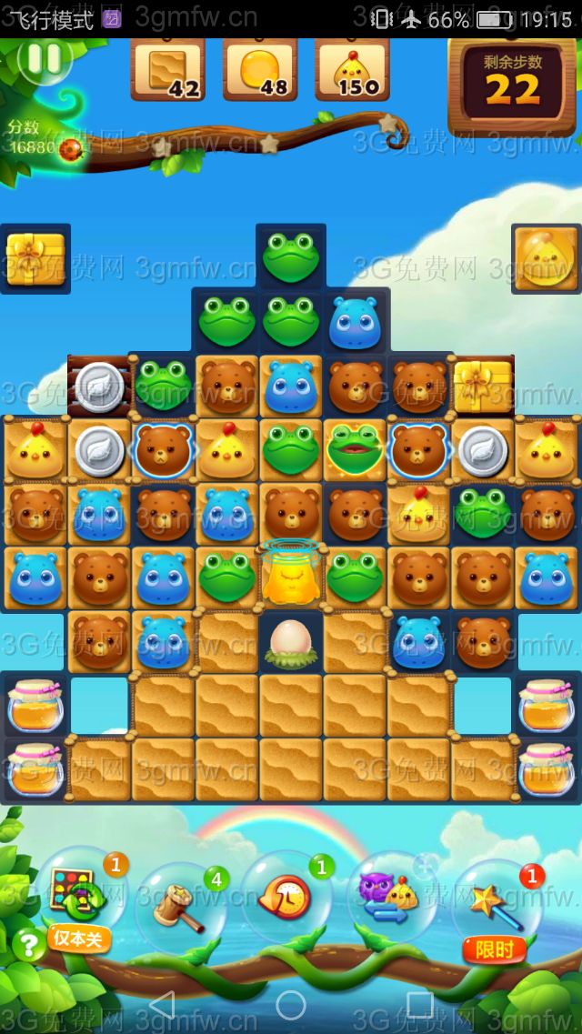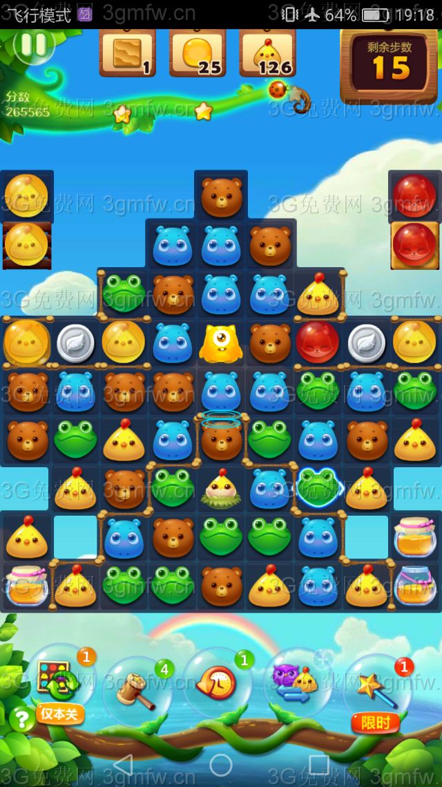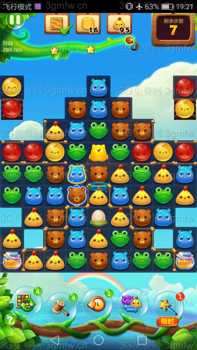 4,收集小黄鸡比较难,主要靠打下面的动物形成连消爆分打鸡窝就可以。