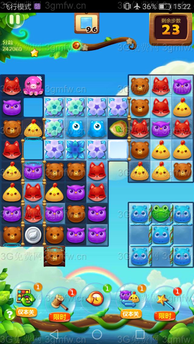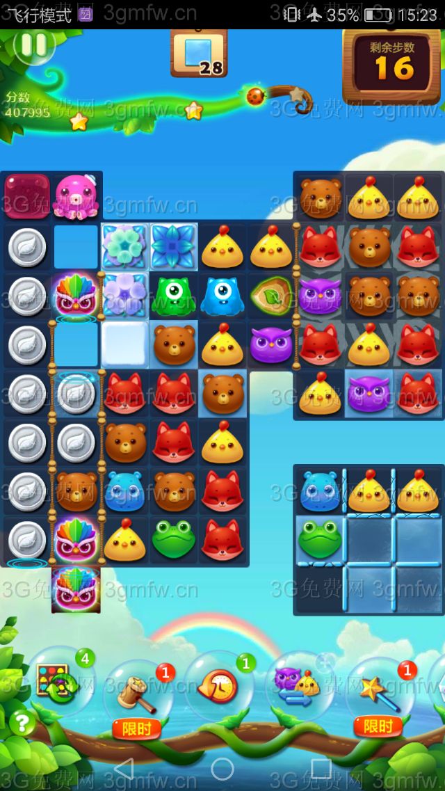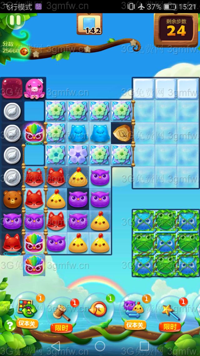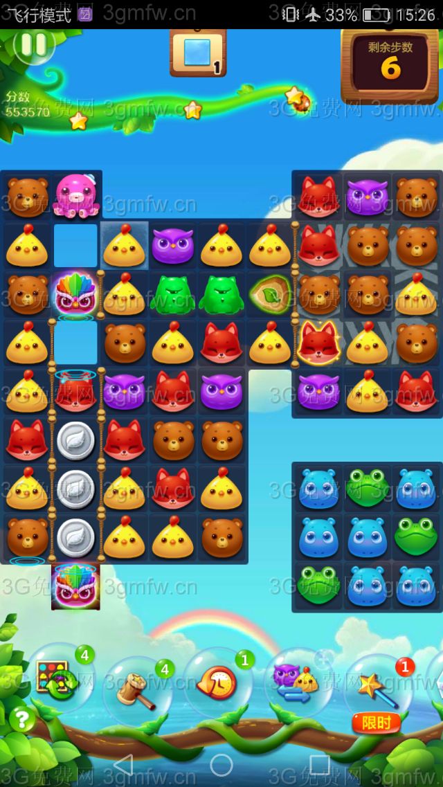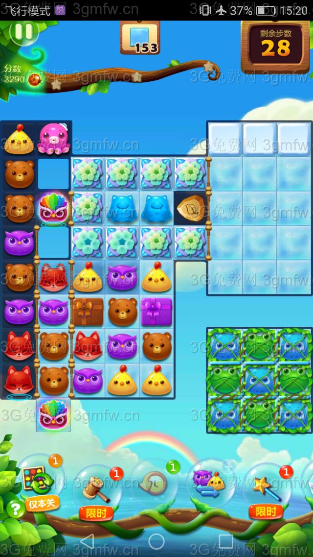 5,剩余的冰块,可以用魔力鸟单吸小动物,来消除剩余的冰块,把冰块打完后就可以三星过关了。