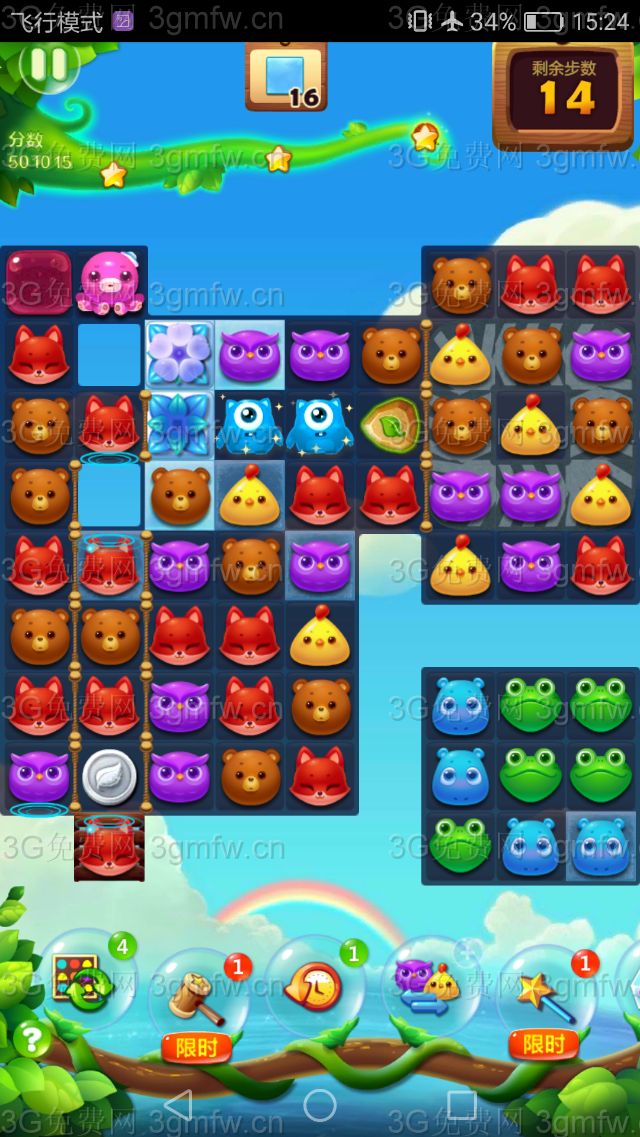 3,双鸟交换后就可以去打右边的魔法石了,等到左边的魔力鸟再出来后,再去组成双鸟交换得分就可以三星了。