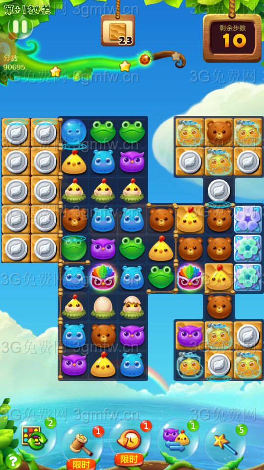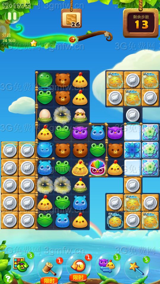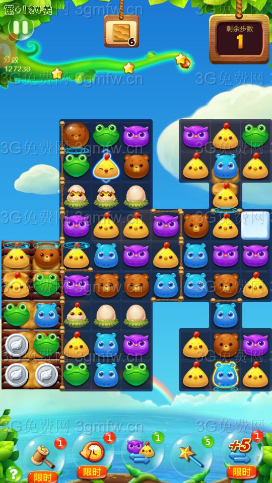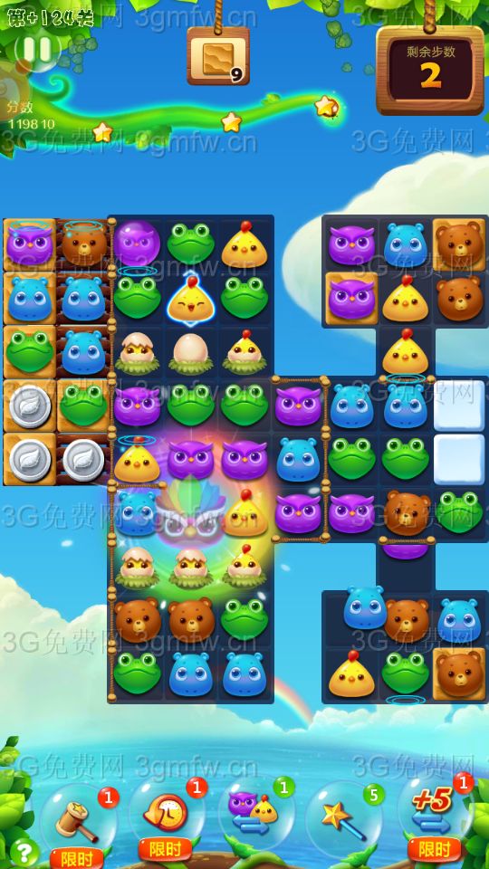 开心消消乐精英关124关运气总不是特别好,鸡窝不连暴,步数总不够!这次准备了限时加五步道具,总算过关了!