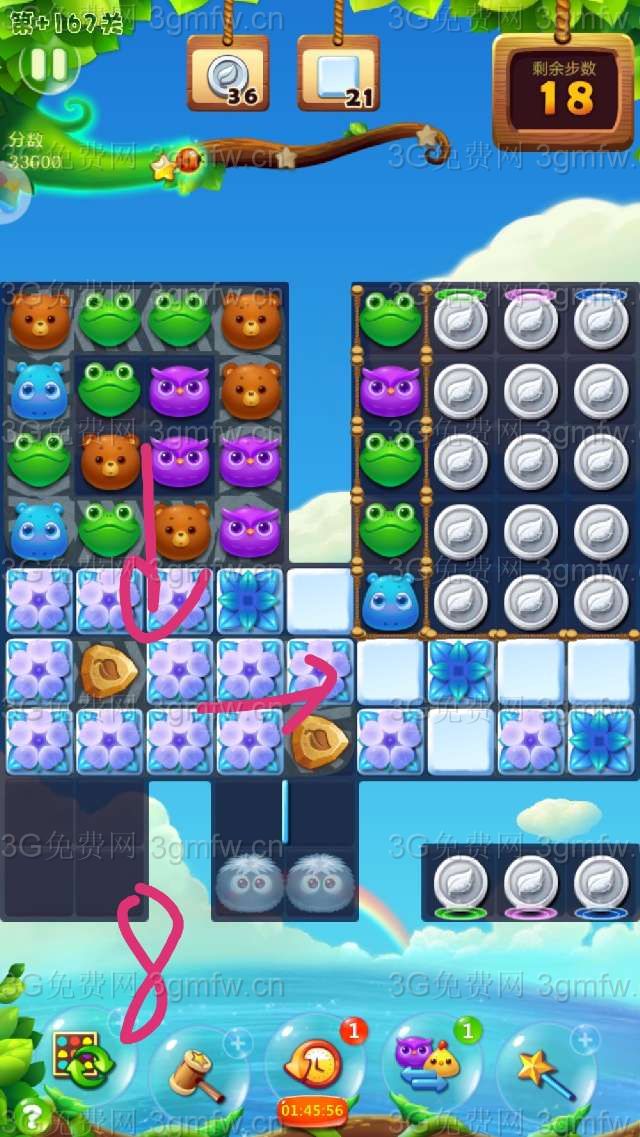 本关破局要有耐心,破局之后,大力消冰块即可,银币可顺路消除。步数可不加三。祝大家早日过关!